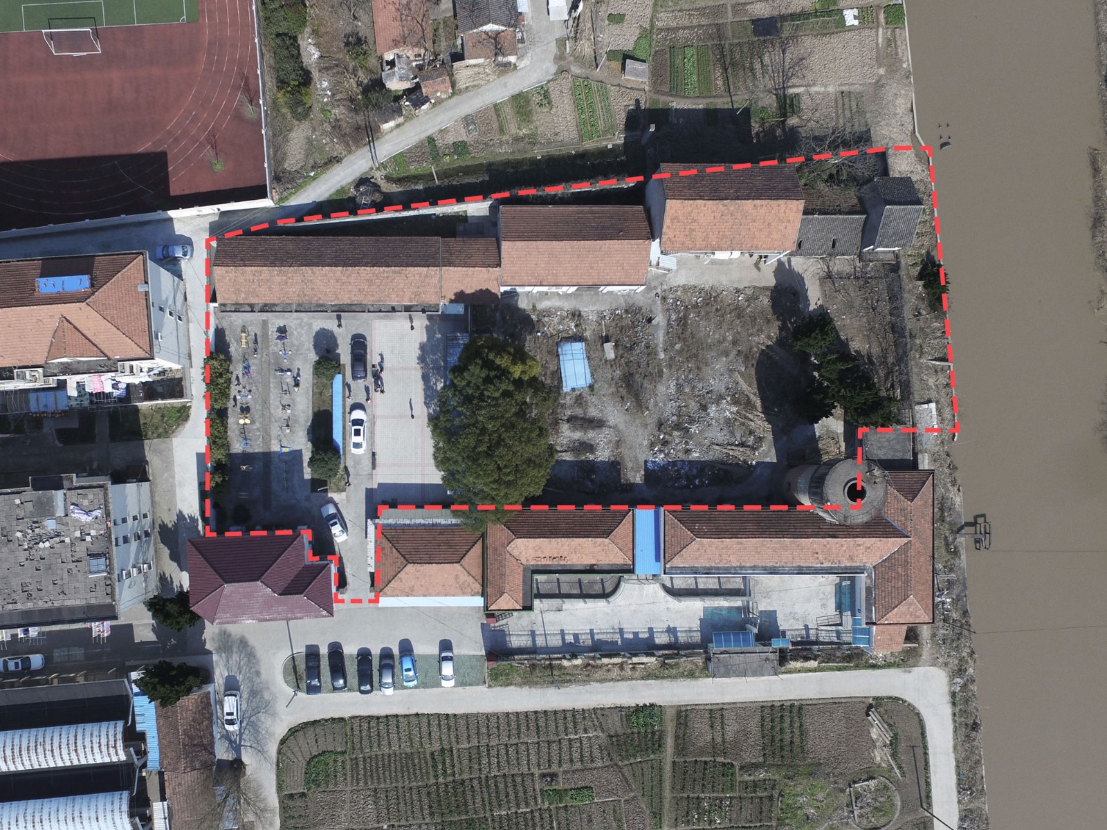 場(chǎng)地的西側(cè)是居民樓,南側(cè)是侯家鎮(zhèn)的行政服務(wù)單元,東側(cè)毗鄰河道,北側(cè)緊挨著農(nóng)田。場(chǎng)地內(nèi)有5棟房屋由西至東排列,由于是不同時(shí)期建造的,房屋的前后位置及高低都參差不齊,還存在不同程度的地基沉降、墻面斷裂、屋面塌陷等問(wèn)題,尤其是東側(cè)兩棟民房早已是破舊不堪的危房。場(chǎng)地的中央有4棵老樟樹,樟樹的東側(cè)區(qū)域原先是一個(gè)自來(lái)水廠,從遠(yuǎn)處就能望見遺存下來(lái)的水塔。