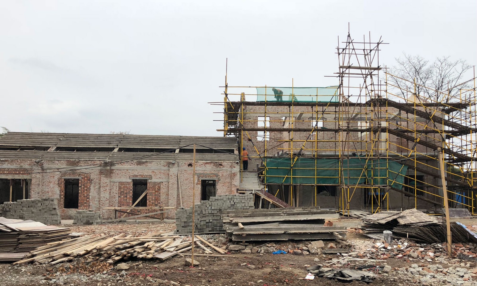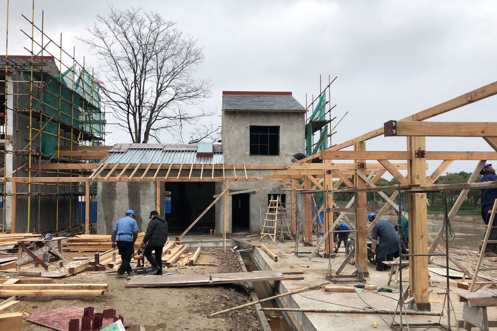 建筑進(jìn)行了全面徹底的修繕和改建,包括拆除危房并重建,加固有結(jié)構(gòu)隱患的房屋,拆除屋頂,重建樓梯,拆補(bǔ)、調(diào)位門窗洞口等,并且加建了木結(jié)構(gòu)的回廊。由于是老房改造,很多圖紙上的設(shè)計(jì)需要在現(xiàn)場(chǎng)進(jìn)行應(yīng)急調(diào)整,很多材料和工藝也需要應(yīng)當(dāng)?shù)厥┕り?duì)能實(shí)現(xiàn)的方法進(jìn)行調(diào)整,整個(gè)配合過(guò)程是一場(chǎng)艱辛的持久戰(zhàn)。
