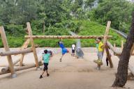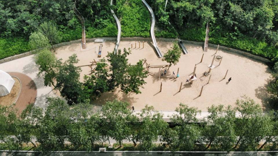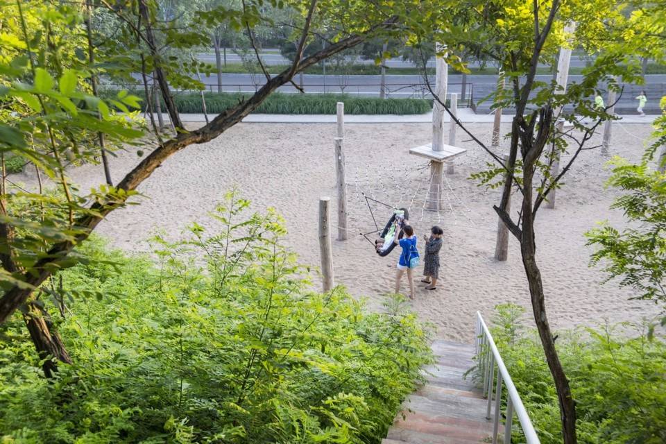 公園內(nèi)的各種參與性設(shè)施除了常規(guī)功能之外,被賦予了一個(gè)個(gè)有獨(dú)特意味的形式。