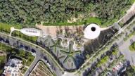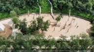 本案位于秦皇島北戴河阿那亞旅游度假村的一片現(xiàn)有刺槐林旁,是一個(gè)服務(wù)于整個(gè)度假村的兒童農(nóng)莊樂園。設(shè)計(jì)將場地分為林中靜謐冥想的空間與林邊歡悅的農(nóng)場樂園兩部分。林中場所設(shè)計(jì)了簡潔的木棧道和捕捉光影的亞克力屏風(fēng),讓人們?cè)诹种猩⒉降耐瑫r(shí),感受自然界光與風(fēng)的變化?;顒?dòng)樂園從《山海經(jīng)》中提取靈感,設(shè)計(jì)了魚骨亭、鰻魚長凳、海星花田、攀爬海螺和五爪章魚滑梯等具有動(dòng)物形態(tài)的互動(dòng)景觀元素,給場地賦予了獨(dú)特的記憶點(diǎn),又能讓游人享受與景觀元素的互動(dòng),在玩耍的同時(shí)學(xué)習(xí)有關(guān)動(dòng)植物、農(nóng)業(yè)灌溉的知識(shí)。
