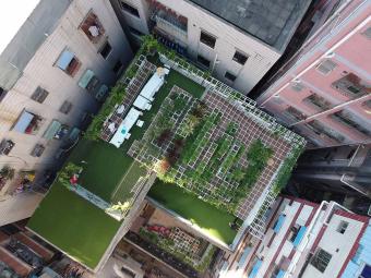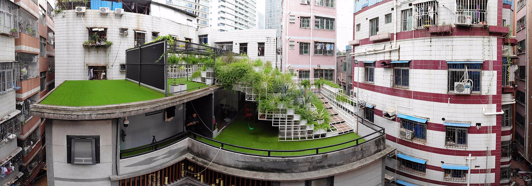 隨著現(xiàn)代城市的蔓延,原本城市邊緣的自然村落逐漸成為了繁華都市中的孤島。城中村作為中國近代人口飛速發(fā)展的產(chǎn)物,普遍存在于中國的各大城市中。城中村雖稱為村,卻無村莊印象中的青山綠水,僅有這城市里最堅硬的不透水混凝地表。城中村內(nèi)空間擁擠,采光不足,“臟亂差”是人們對城中村的第一印象。建筑師嘗試通過力所能及的手段,在城中村中做了實踐嘗試,意在解決城中村面臨的一些問題。