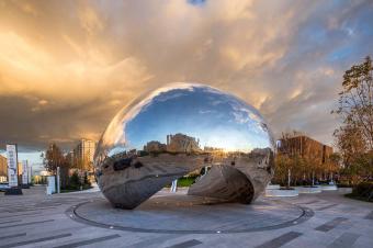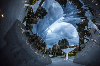 道路交叉口的街角,需設(shè)計(jì)地標(biāo)性要素,強(qiáng)調(diào)入口,增加場(chǎng)所的記憶點(diǎn)。在思想的碰撞當(dāng)中,我們希望設(shè)置一個(gè)異于周邊環(huán)境,超越于森林谷地的非日常的裝置性雕塑,“鯨奇”的想法應(yīng)運(yùn)而生。引入海洋生物“鯨魚雕塑”到內(nèi)陸森林城市,消解地理學(xué)和心理學(xué)上的距離,在靜止單調(diào)的城市生活中增加自由的趣味與新意。“鯨魚”雕塑致敬藝術(shù)家安尼施·卡普爾的經(jīng)典之作“云門”。超然的力量與溫柔,喚起人內(nèi)心的溫和情感和無限遐思。
