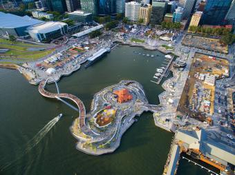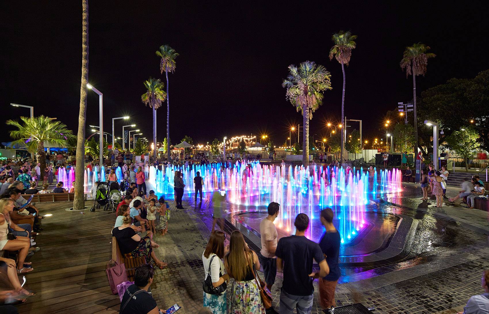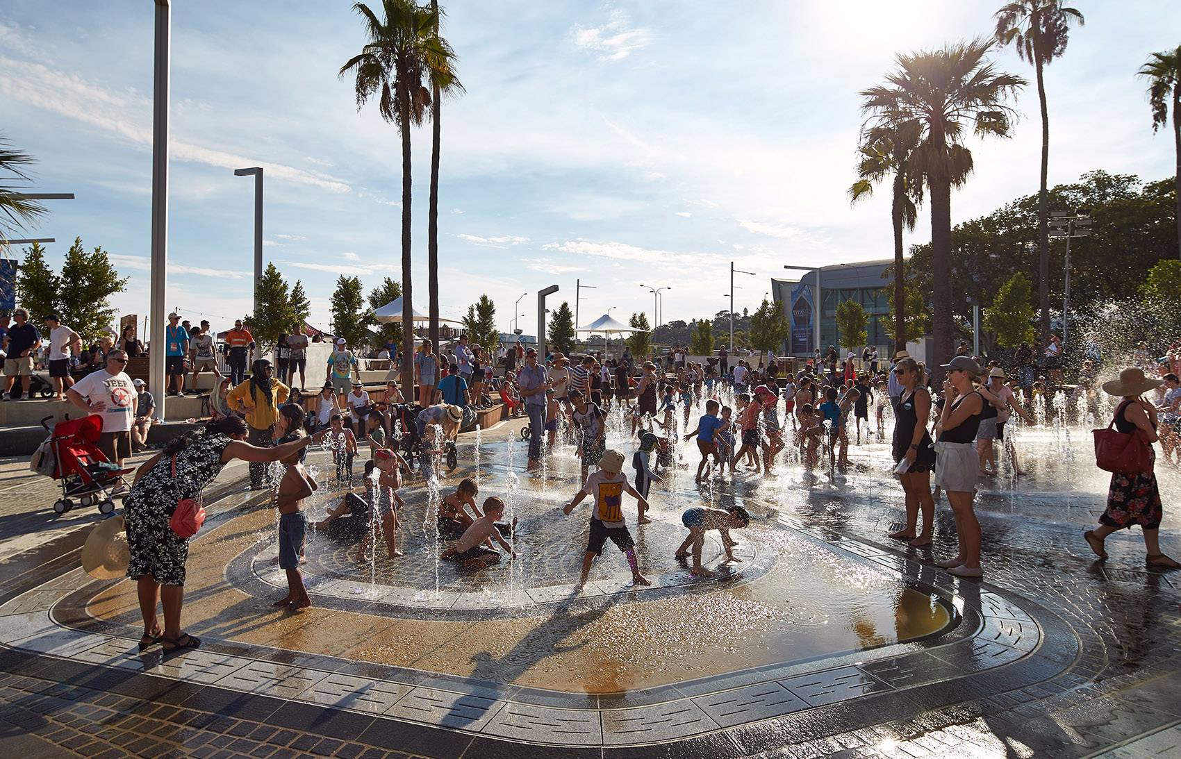 居民在這里相聚并享受綠地花園帶來的怡人環(huán)境。環(huán)繞著河水的階梯坐席,象征著澳大利亞西部的濕地河湖景觀。搭配燈光的地面噴水裝置,為各個(gè)年齡層的來訪者帶去充滿活力的休閑體驗(yàn)。伊麗莎白碼頭再開發(fā)項(xiàng)目,對(duì)打造服務(wù)于居住,文化,創(chuàng)意,學(xué)習(xí),娛樂和商務(wù)的多樣性宜居城市起到了標(biāo)志性作用。