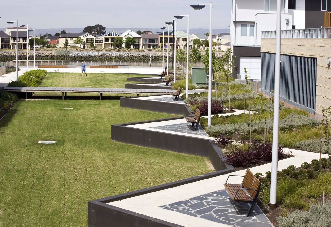 在此次的碼頭區(qū)設(shè)計(jì)中,包括一條海濱大道,介于公寓群之間的三個(gè)指狀公園,聚集空間(位于海濱大道附近),水上的觀景甲板以及街道景觀的改造。該項(xiàng)目是由Brookfield Multiplex以及城建項(xiàng)目管理中心發(fā)起的,這些部門與Taylor Cullity Lethlean團(tuán)隊(duì)和Cox團(tuán)隊(duì)相互合作,才完成了該工程,此次設(shè)計(jì)的目的就是在密度大,人口多,空間少的城市環(huán)境中創(chuàng)造一個(gè)多樣化的空間,讓人們能夠體驗(yàn)到不一樣的經(jīng)歷,為單調(diào)繁忙的都市生活增添一絲趣味。