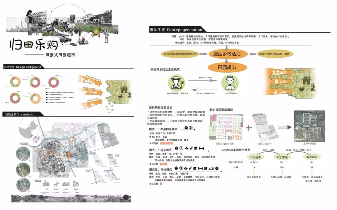 精選點(diǎn)評(píng):選題新穎,面對(duì)社會(huì)問題提出了獨(dú)到的設(shè)計(jì)策略。設(shè)計(jì)方案可行性強(qiáng),是用景觀規(guī)劃架起城鄉(xiāng)需求、解決城鄉(xiāng)矛盾的大膽嘗試。