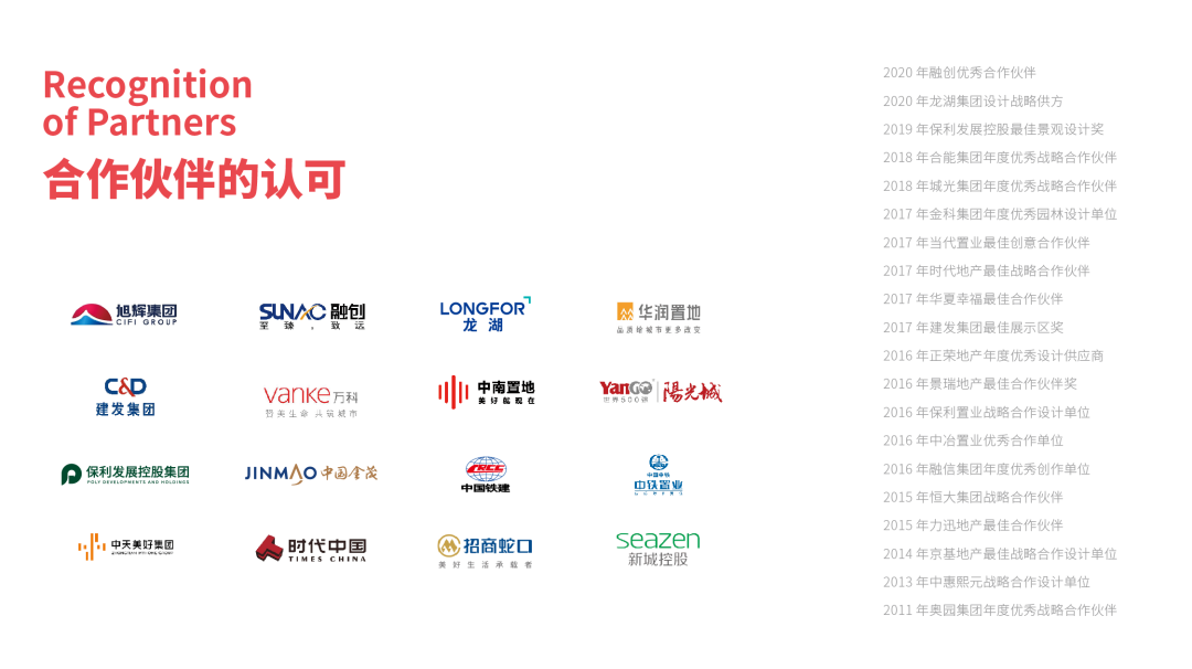 憑借著突出的設(shè)計能力和品牌優(yōu)勢,山水比德與旭輝、融創(chuàng)、龍湖、華潤置地、建發(fā)、萬科、中南建設(shè)、陽光城、保利、中國金茂、中國鐵建、中鐵、中天、時代、招商蛇口、新城等眾多優(yōu)質(zhì)客戶建立了穩(wěn)定的合作關(guān)系,為業(yè)績增長提供了必要保障。