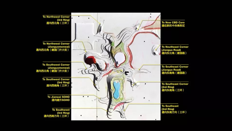 ▲ 庫哈斯在國貿(mào)路口的超級建筑和開放式城市市場的建議。