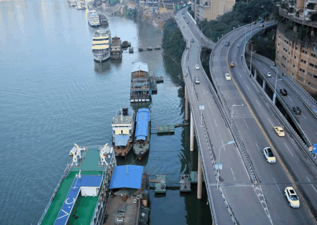 80年代,城市開始進(jìn)入以全面修建跨江大橋,濱江路為標(biāo)志的工業(yè)化、城市化進(jìn)程,重慶的交通也因此實(shí)現(xiàn)了由水路、步行轉(zhuǎn)變?yōu)楣?、鐵路的方式。濱江空間逐漸被工業(yè)與碼頭等生產(chǎn)性活動(dòng)所占據(jù);而三峽大壩的修建,使灘地空間越發(fā)狹小,城市居民與江的關(guān)系也逐漸疏遠(yuǎn)。