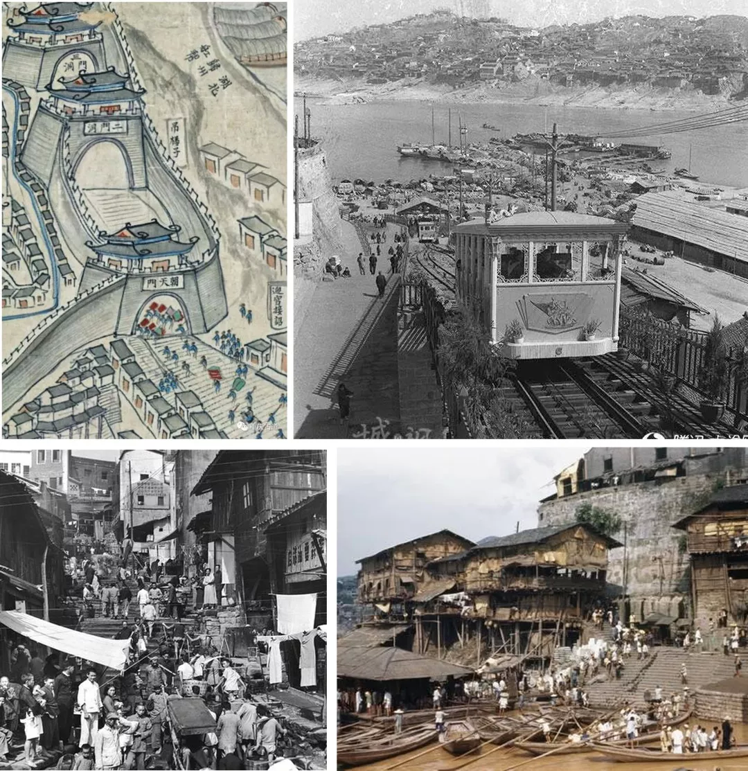 重慶因長(zhǎng)江而立,在水路與步行作為城市主要交通方式的年代,城市的生產(chǎn)與生活沿江展開。船從水上???,棒棒把貨物扛上岸,沿江山地上布置著獨(dú)特的吊腳樓,而灘地則是市民重要的公共活動(dòng)空間。