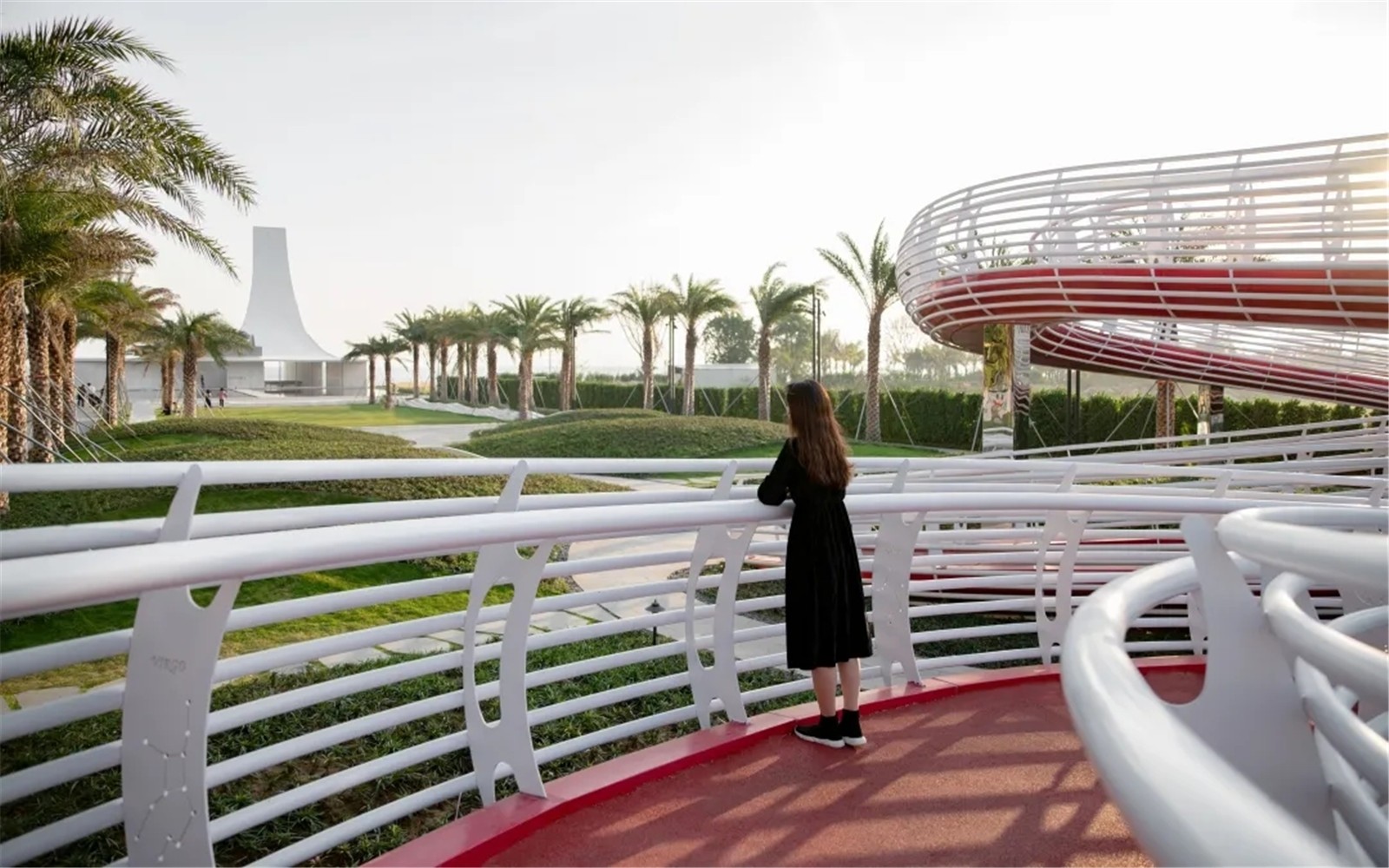 強(qiáng)烈雕塑感使得環(huán)橋360°視線皆有景可觀,獨(dú)特的立體互動(dòng)空間讓行走其中的戀人始終能夠彼此相遇。同時(shí)作為連接入口與花海的空中紐帶,增添了空間層次感與視覺體驗(yàn)性。