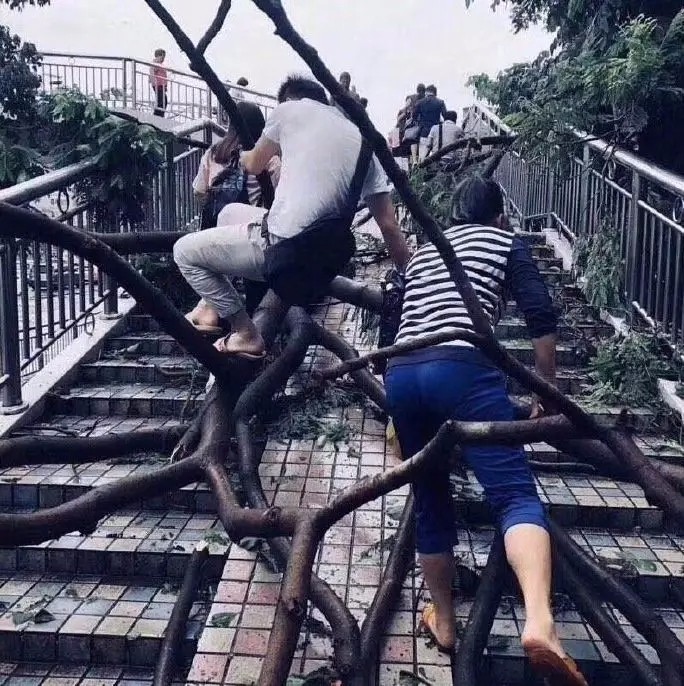 ▲ 臺風(fēng)過后,深圳人穿越“叢林”的上班路(網(wǎng)絡(luò)圖片)