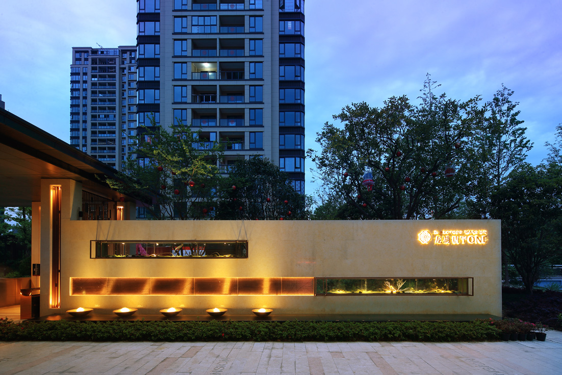 唐寧one項目最大的挑戰(zhàn)在于南側(cè)面向市政道路用地狹長,由于用地售賣面積的最大化增加商業(yè)后,很難有比較理想的主入口空間,下方是初期的主入口草圖,在建筑規(guī)劃前期我們配合提出了主入口空間,緊急消防開口,人車分流,地庫入口位置和管控的規(guī)劃探討,還試圖探討過借鑒香港禮頓山莊車庫入口的可能,最終考量了東面通過橋連接的古翠路是大量人行回家和逛公園的流線,確定了絕對人車分流的建議,同時為了確保商業(yè)街前不增加消防通道或車道干擾可以有直接面對東面的公園和河流,可以形成較精品的商業(yè)符合樓盤高端豪宅的氛圍,分別在東面通過一段特色墻對人行流線的帶入,商業(yè)背后為遮擋西側(cè)不良環(huán)境同時通過車行特色墻的帶入,從規(guī)劃的限制條件出發(fā)提出了酒店式到達大廳,利用從煩雜的外界環(huán)境進入寧靜雅致的內(nèi)部環(huán)境這種感官差異,突出項目的內(nèi)在品質(zhì)。