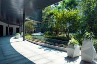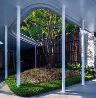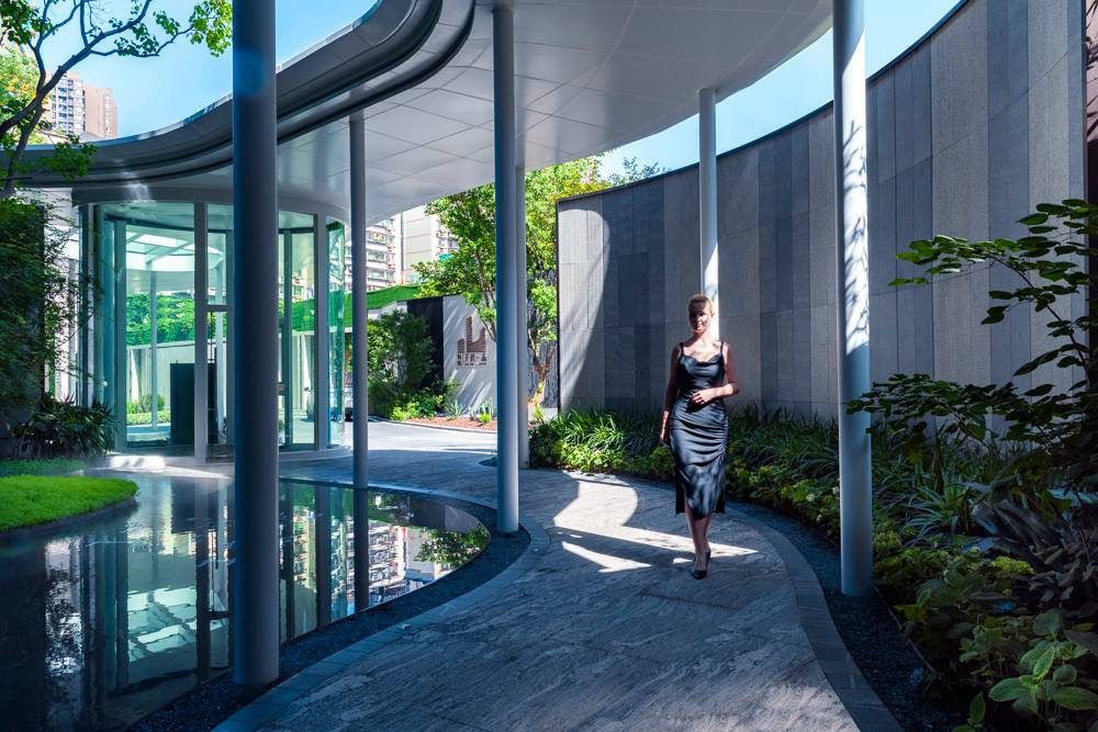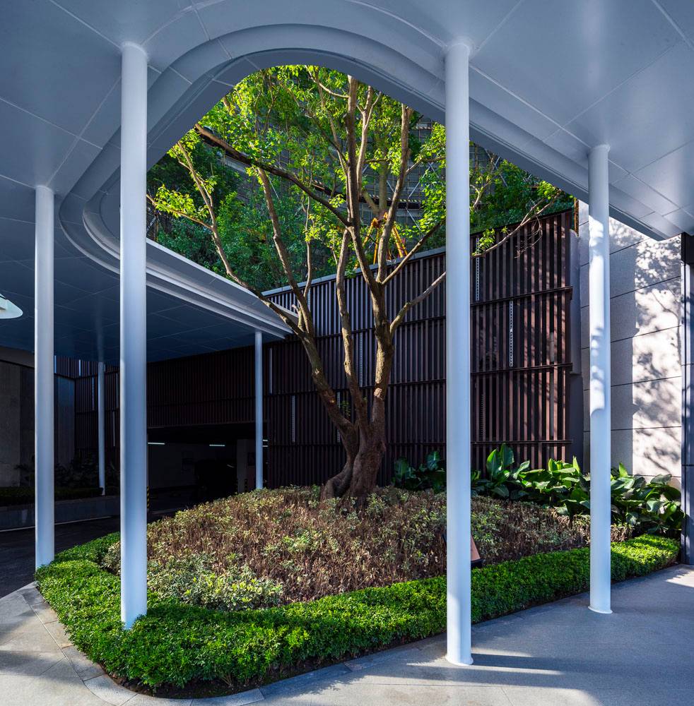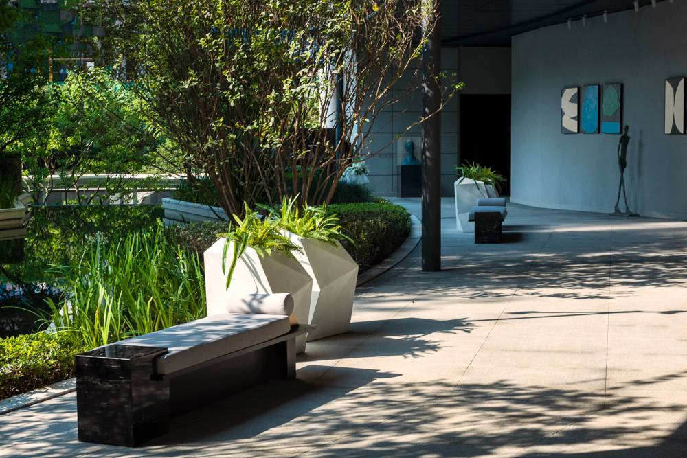 簡潔的線性鋪裝,搭配線條感十足的休閑座椅