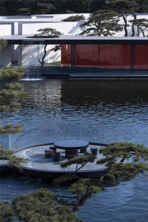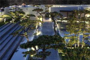 松,在歷史長河中,地位超然。歷代文人雅士,更將其視為安頓心靈的審美對象。而松生活館,恰是選取西安古坊墻的線性空間為基本組成元素,試圖在確立界限上做出突破時(shí)間界限的探討。通過全園單植松的極簡設(shè)計(jì),結(jié)合建筑框景手法,打造千重翠松的奢雅畫卷,展現(xiàn)中國人對“松文化”的特殊情感,以及它在歷史畫卷中的超然地位。