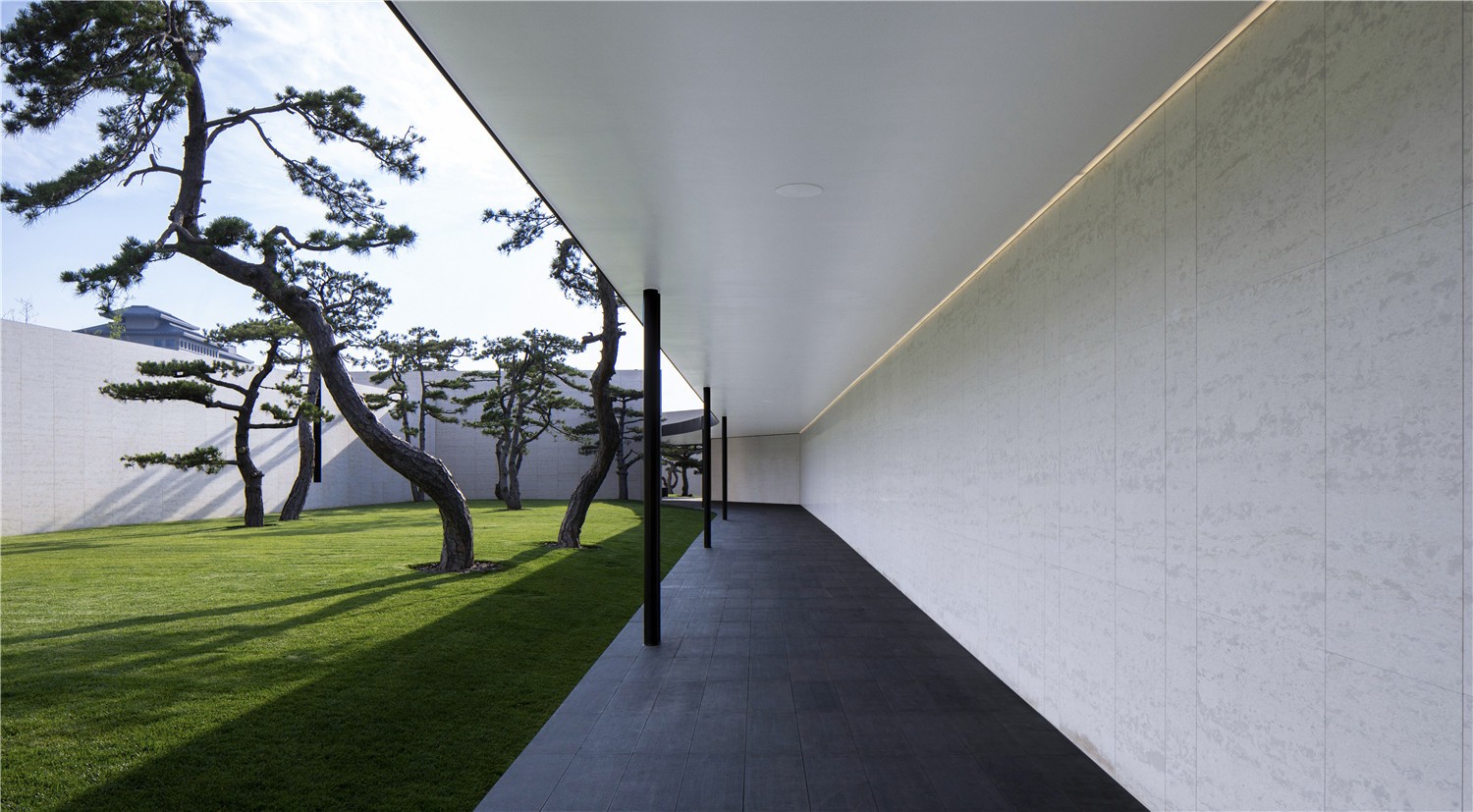 白墻青松,時(shí)間靜止,平靜中蘊(yùn)含力量。松、廊、墻三種元素相互掩映、相互依托,線性的分割與重組,在這里,且與松展開一場對話。
