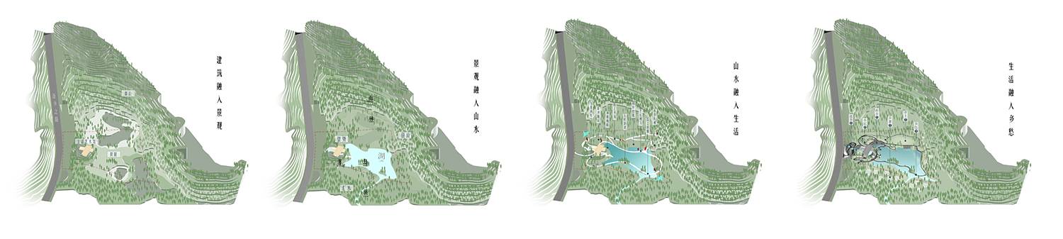 簡單的鄉(xiāng)情飽含著對故鄉(xiāng)和土地的情感,我們無意改變場地原有的聲音,而是希望讓建筑融入景觀,景觀融入山水,山水融入生活,生活融入鄉(xiāng)愁。