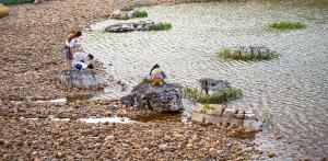 近水的碎石灘時(shí)而浮光掠影,時(shí)而草花搖曳,孩子們將閑暇時(shí)光寄托于此,盡享與自然互動的樂趣。這片碎石淺灘不僅給小朋友們帶來了快樂,也讓我們想起故鄉(xiāng)快樂愜意的童年。