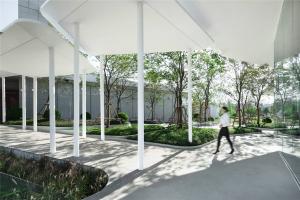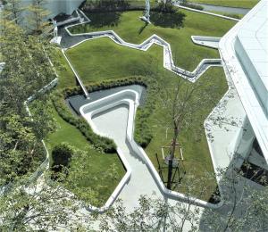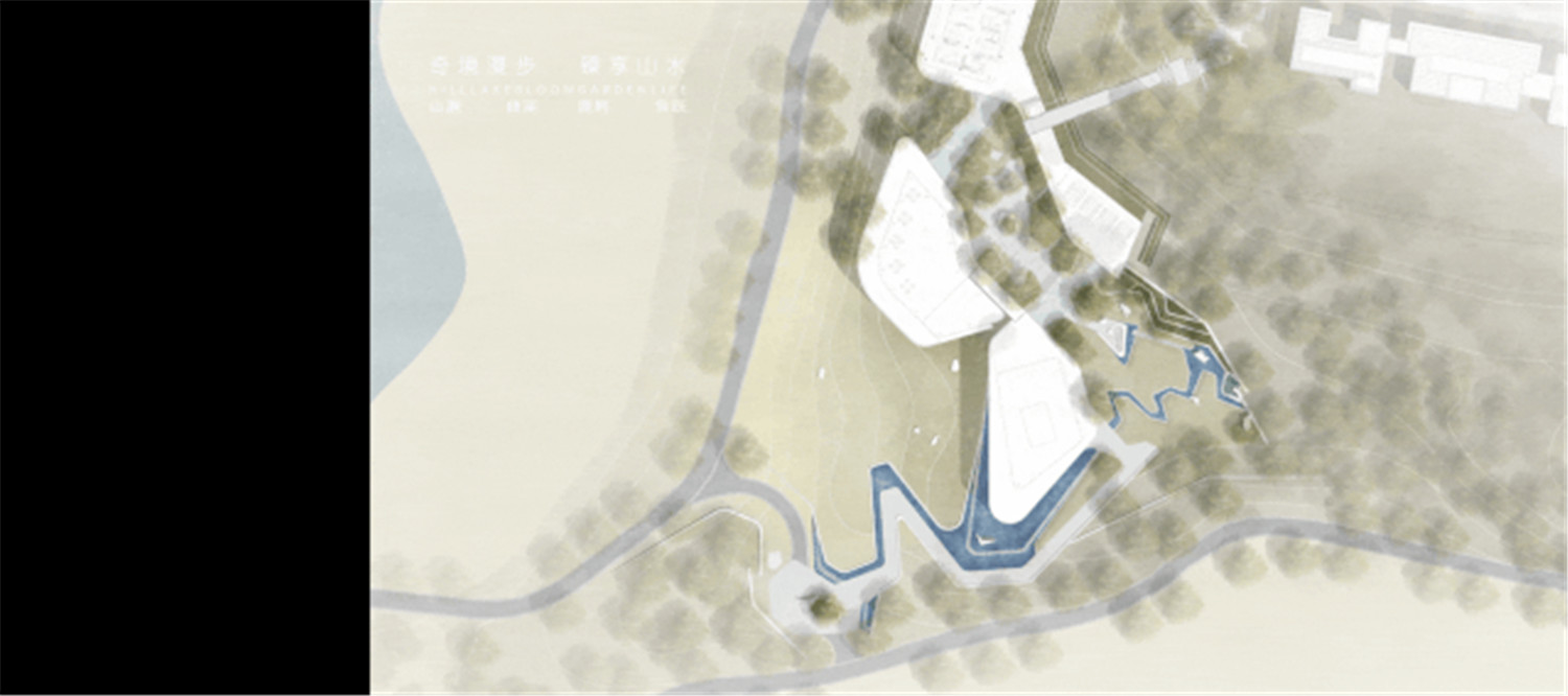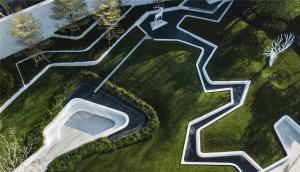我們意欲用景觀模糊人造建筑與自然環(huán)境的界限,以“漂浮于云上的藝術體驗館”為設計概念,在復雜多變的地形上,用景觀化解了原有高差,用三幕情境式營造:奇境漫步、山澗曲溪、天光綠影,形成更具深意與層次的多元空間。