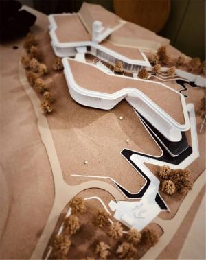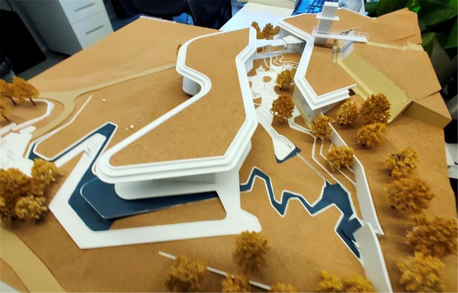 為了化解場地西側邊坡原有的陡峭地形,我們通過多次方案迭代及模型制作,以進行空間與自然的關系推敲。