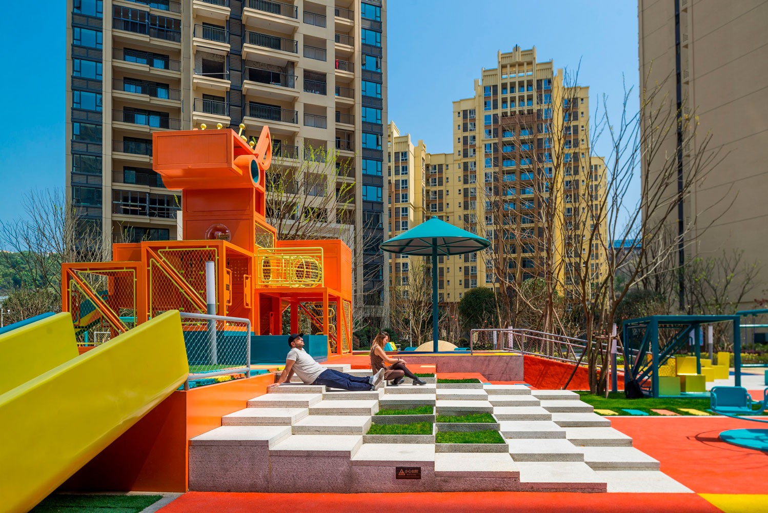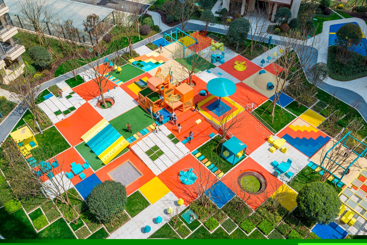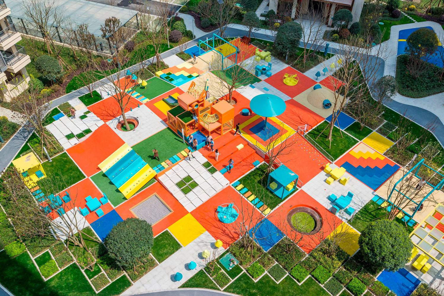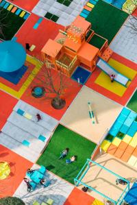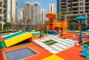 PIXELAND“像素樂園”是一個(gè)公共空間美化項(xiàng)目,它將不同的戶外設(shè)施組合在一個(gè)整體空間中,如特色景觀、兒童游樂設(shè)施、成人休閑設(shè)施等。