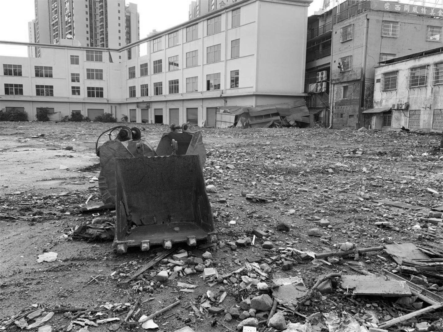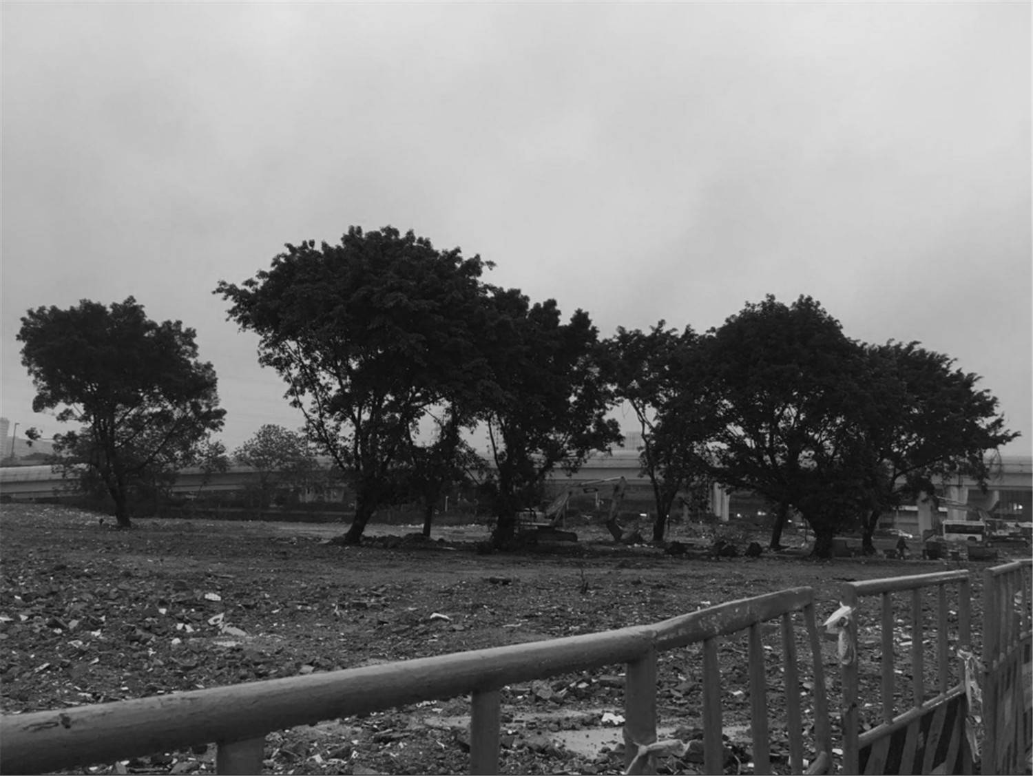 在拆遷留下的廢墟中,屹立著幾棵盤陀老樹,像耄耋的老者,見證著場地的滄海桑田。