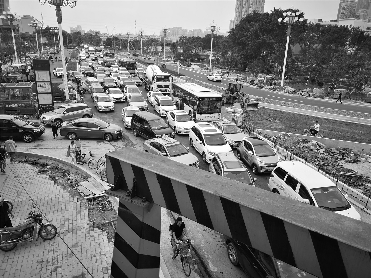 The congestion caused by the flows of vehicles and pedestrians is one of the biggest problems of the site. As to the illegal occupation of roads by vehicles, we alleviated parking difficulties by reasonable parking space planning and vehicle management; at the same time, we also stopped pedestrians from crossing motorways and vehicles from parking anyplace via the combination of green belts and railings on the middle of the bridges.
