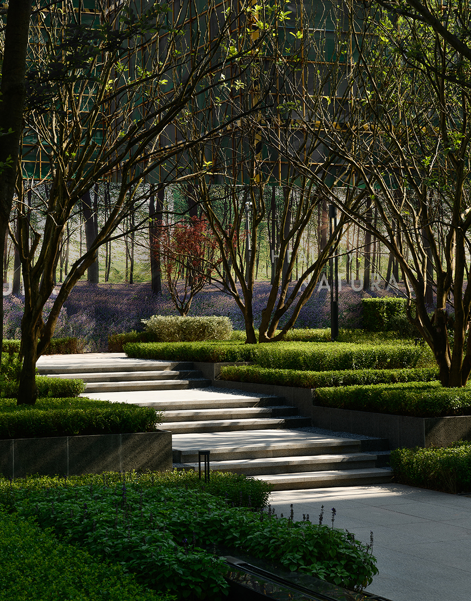 自然、生動、精致——是我們想傳達的生活氣質(zhì)。自然與匠心造景,尊重地形走勢,層層疊疊的流水與林蔭步道相映成趣,拾級而下,營造多層次的景觀空間。