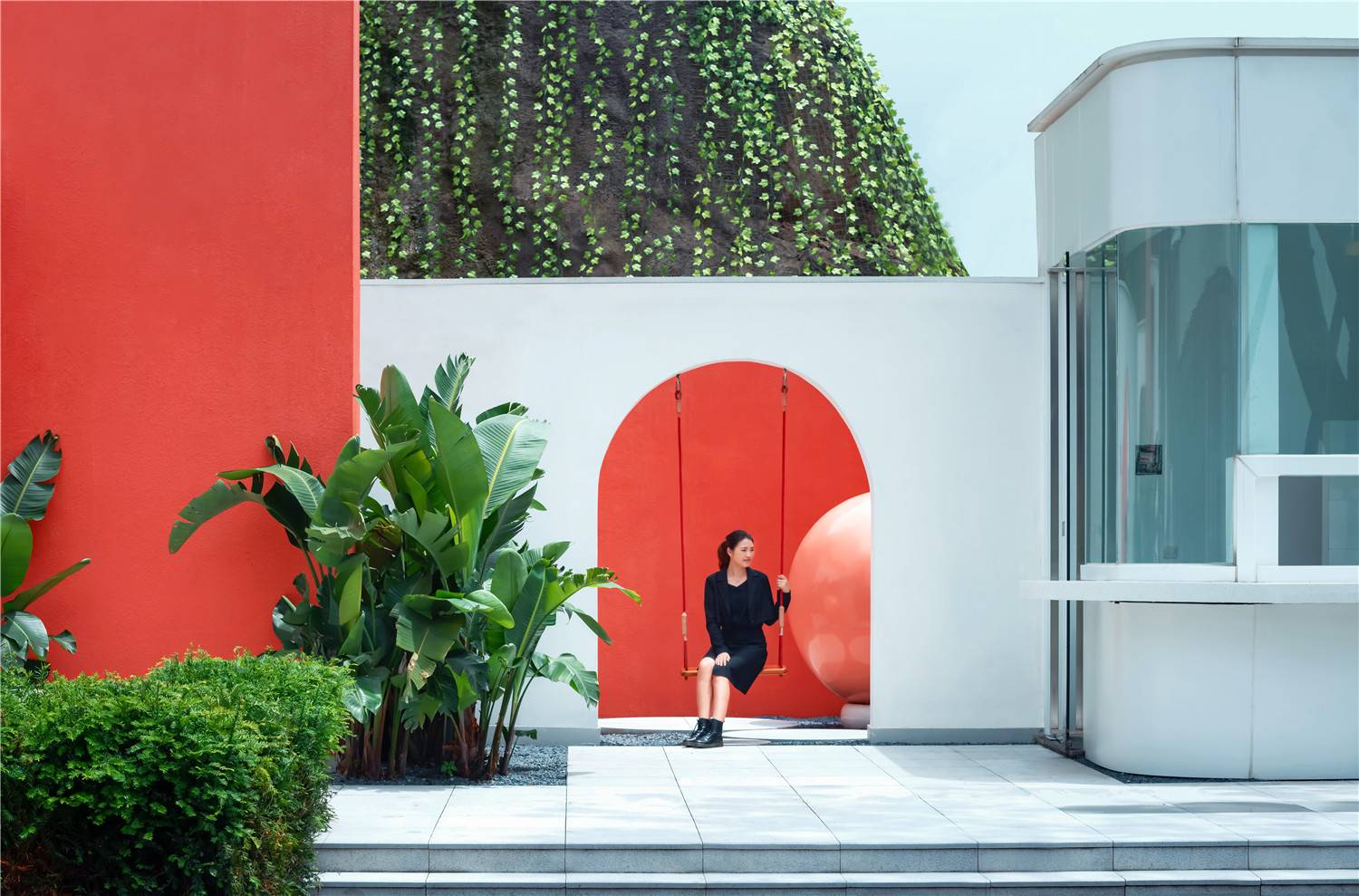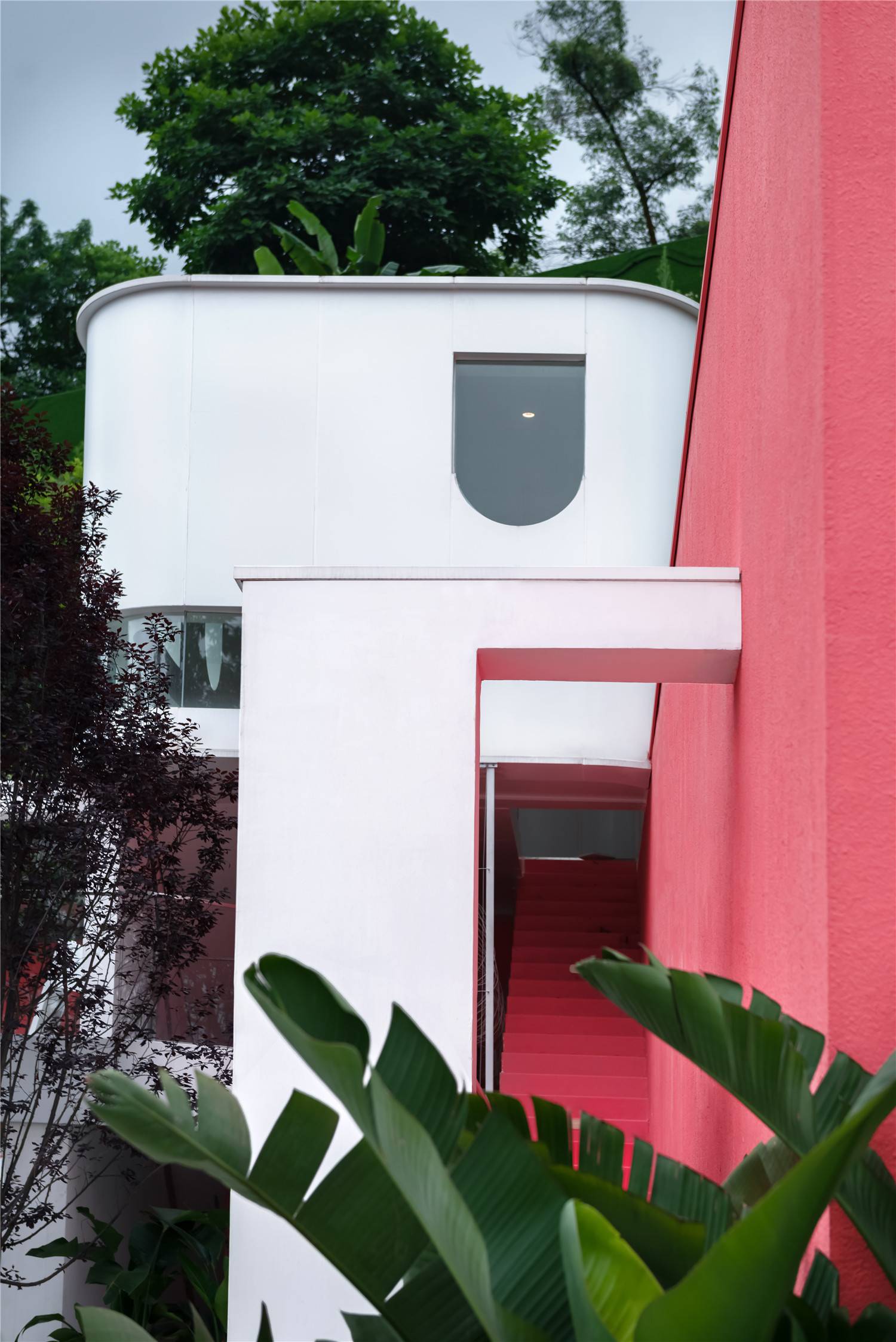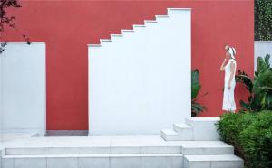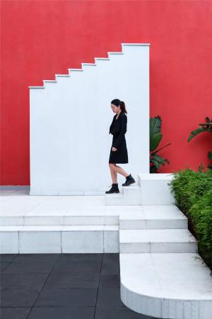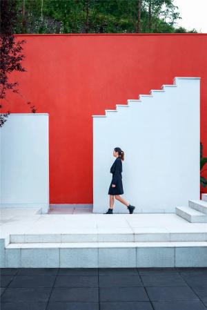 在重慶生活,習(xí)慣起伏與穿梭,在無(wú)數(shù)次低頭爬坡、抬頭看景之后,在下一個(gè)轉(zhuǎn)角,也許會(huì)遇見那位面容模糊的神秘女子。應(yīng)當(dāng)如何用現(xiàn)代的設(shè)計(jì)語(yǔ)匯,向這座地勢(shì)崎嶇、充滿野趣的城市回應(yīng)?于我們看來(lái),與巴拉甘、西扎等建筑師的作品一般,也與韋斯安德森的電影一般,構(gòu)圖規(guī)整、情節(jié)跌宕、色彩濃烈,以及極具辨識(shí)度的情緒傳達(dá)。