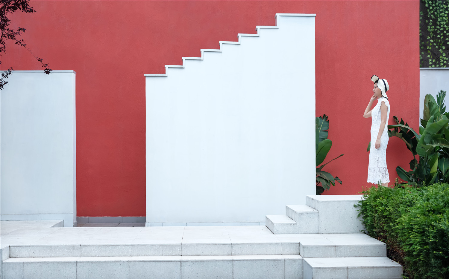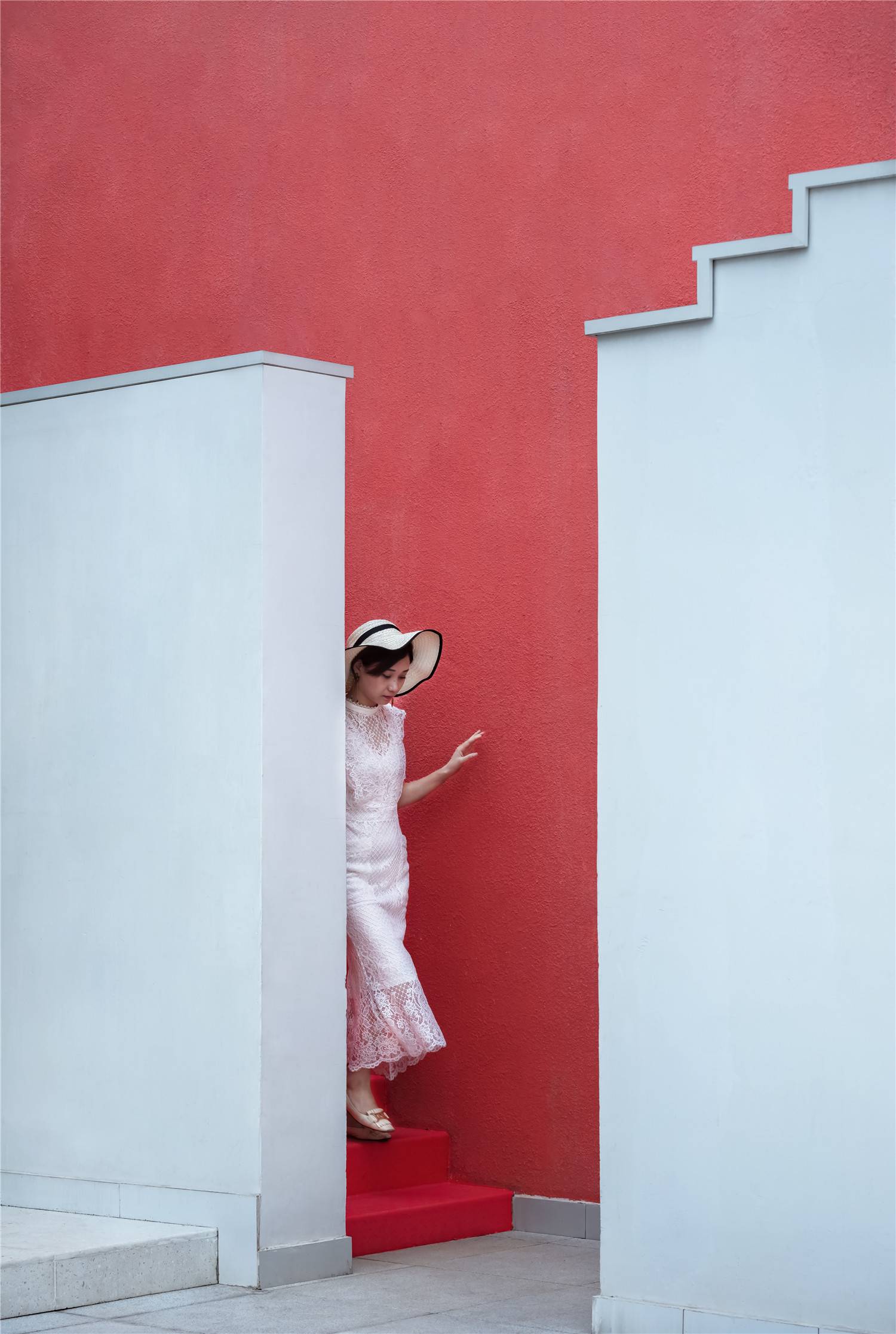 大面的色塊墻體,干凈的白色墻體