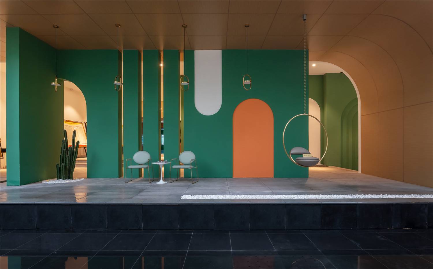 In the project, we used the design techniques of composition geometry and bright colours and added the ever-changing natural light, to turn this place into the intersection of reality and dream without losing the unique geographical culture of Chongqing. The strong visual impact and rich spatial levels will surely impress you like Chongqing, the 8D magical city.