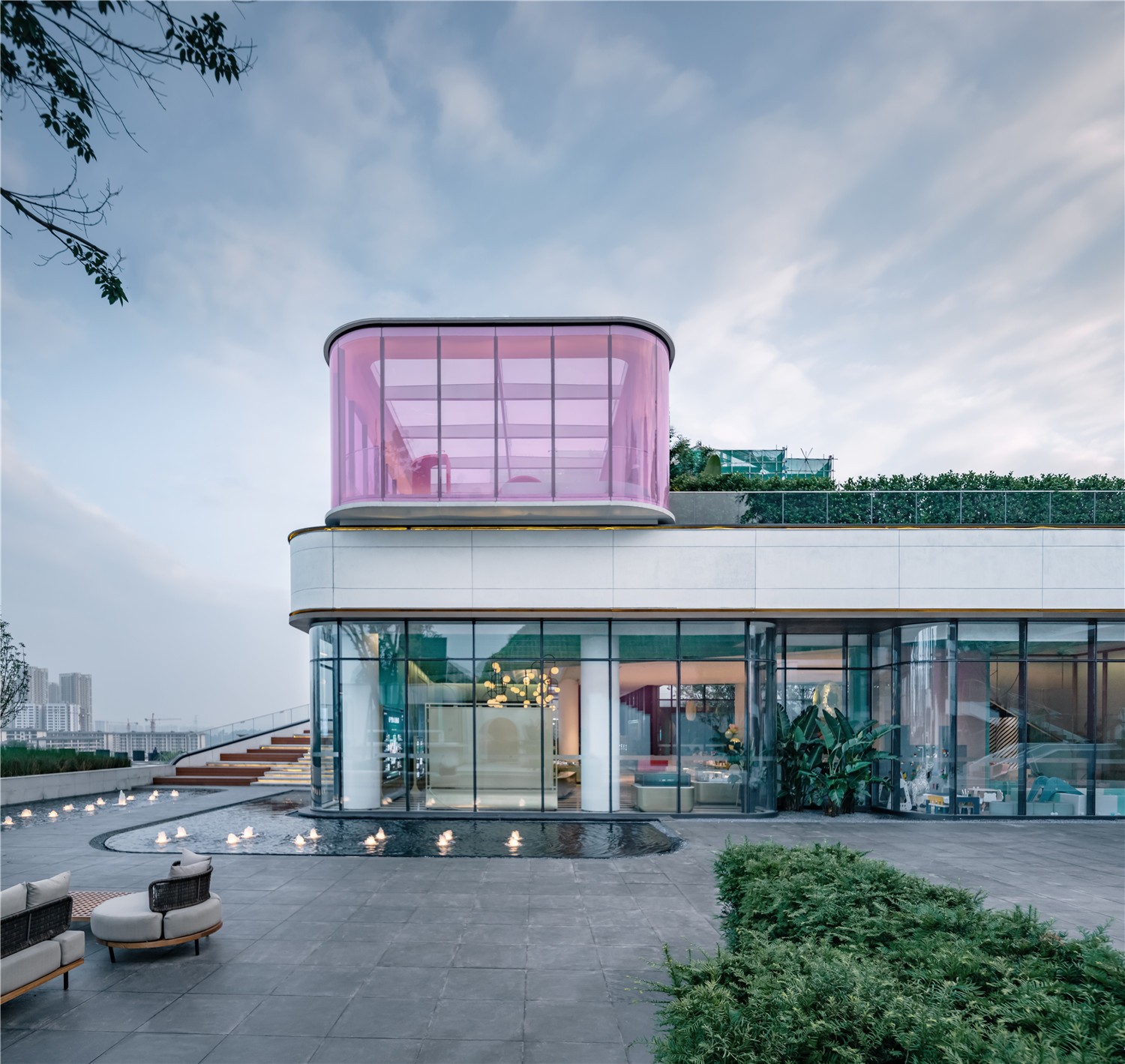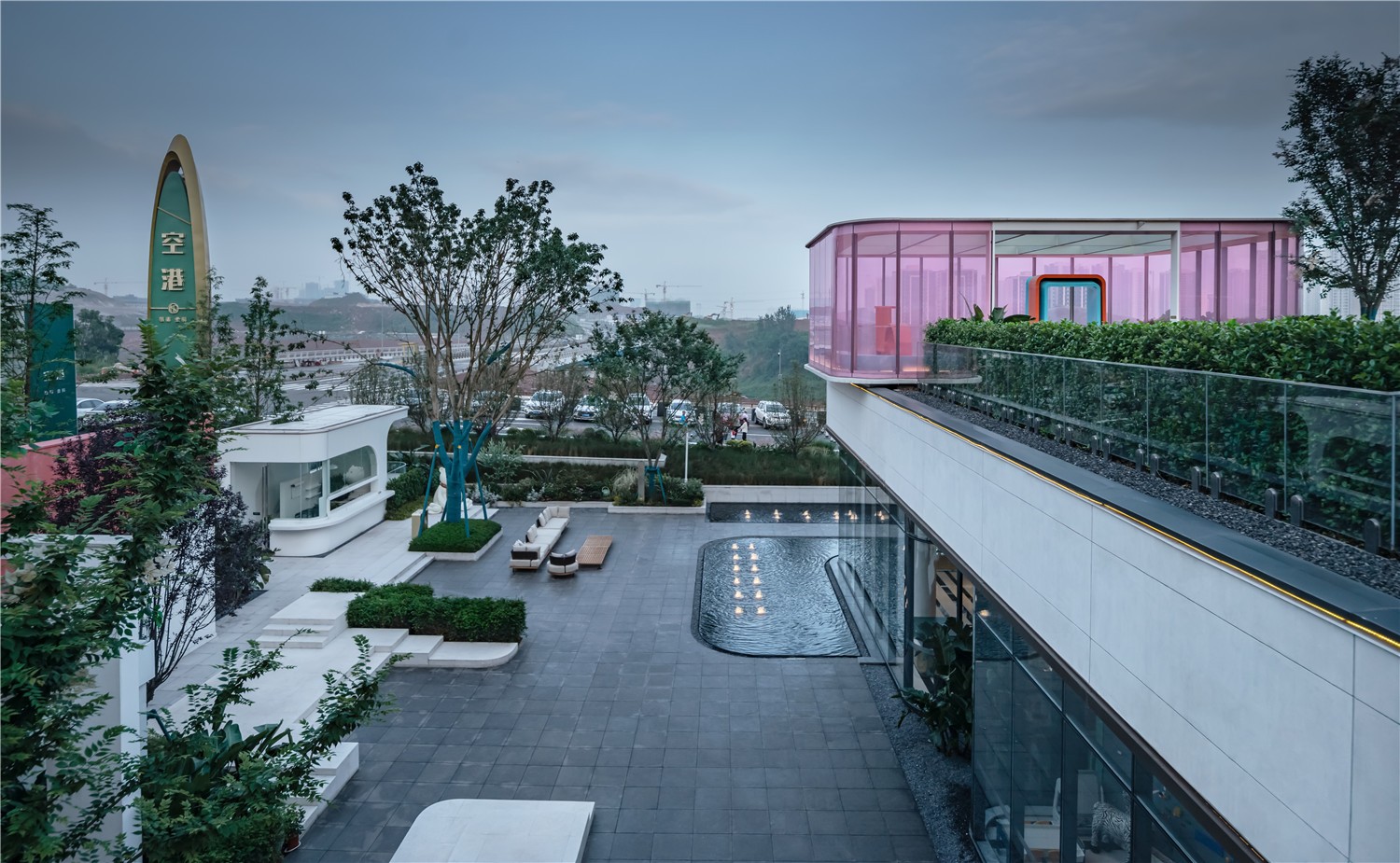 帶著這樣的靈感,我們?cè)谛褫x金科?空港項(xiàng)目中,制造出錯(cuò)落的空間穿插,加入亮眼的主題色彩,建立了一座多層次“視覺系”秀場(chǎng)的景觀,響應(yīng)繽紛生活、互動(dòng)藝術(shù)的設(shè)計(jì)理念,把山城生活的縮影映射于此。