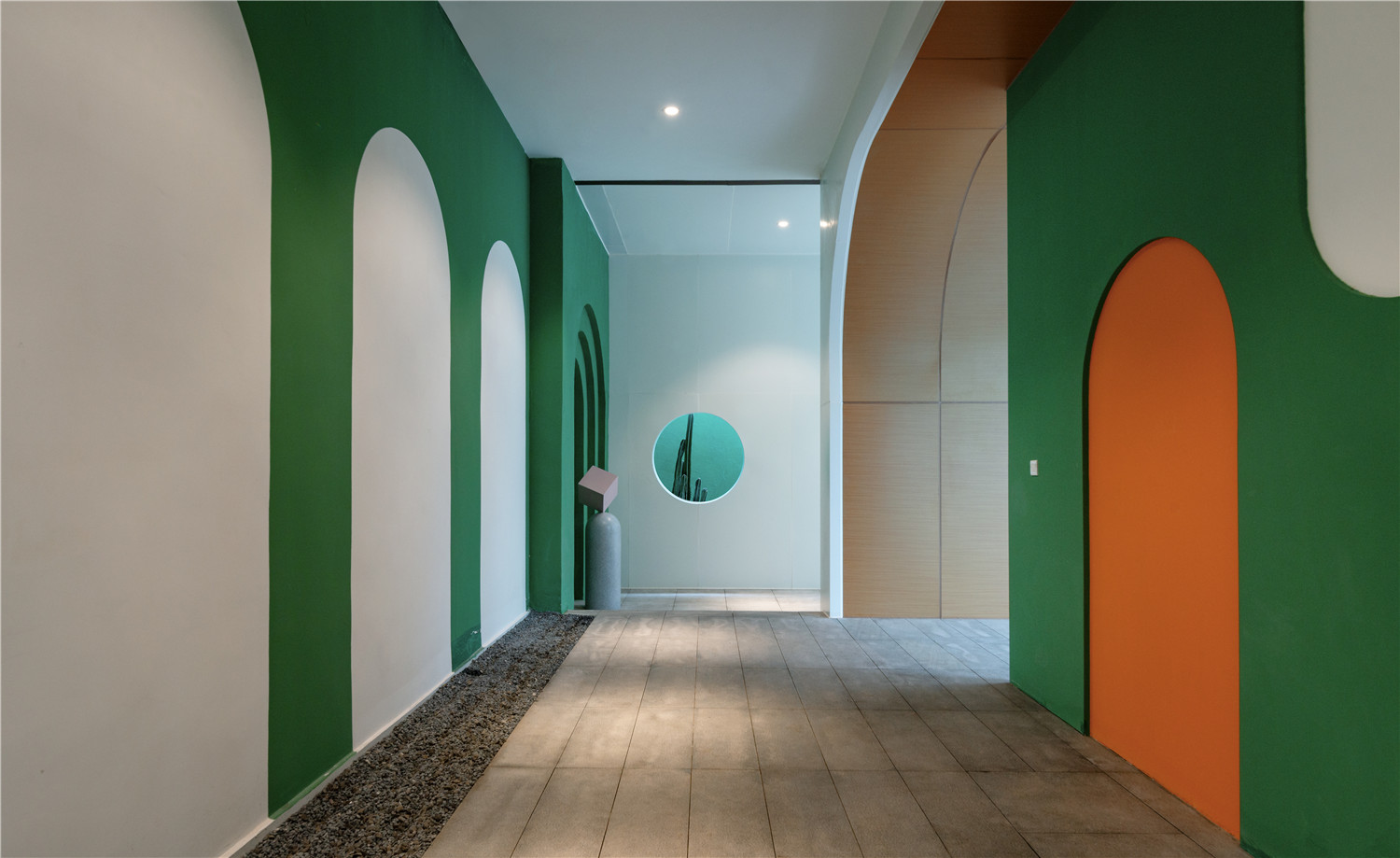 Overlook the fusion of side walls and corridor frame