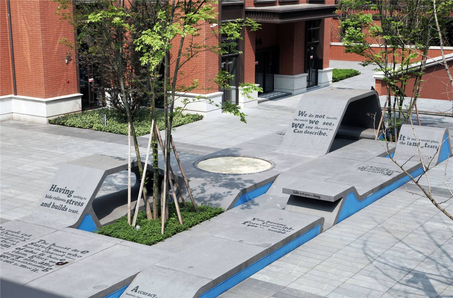Weitu participated in the design of the first phase of the site, the building is formed by 6 American academic business buildings. As a centralized exchange place between Chinese and Western culture and industry, the landscape design is extended with the theme of "melting". First of all, based on the analysis of the behavior habits and personality characteristics of the audience, it is endowed with rich cultural connotations to meet the office population of different cultural backgrounds. Secondly, combining the flow of people and the laws of behavior to maximize the context of the site and fully integrate the inner and outer courtyards, inner and outer buildings, and inner and outer spaces. In the end, the design provides users with a variety of humanized places and rich landscape levels to meet the outdoor communication needs of enterprises outside the office, brewing a unique corporate culture, forming a living office scene plus an international future office system, Create a free, international, artistic, open, and diverse office environment, an open communication platform, a creative display base, a personalized business center, and a space full of art.