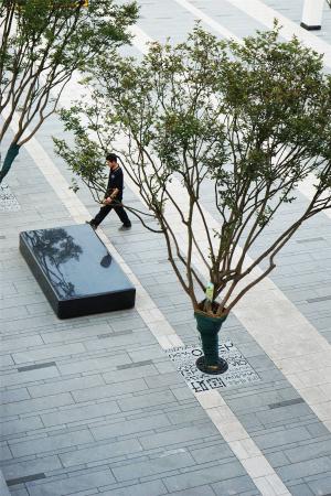 From the main axis of the business to the roof courtyard space on the second and third floors, only two walking steps sandwiched between the facades of the building can be reached. In order to reduce the sense of walking between the two high gables, the design has artistically treated the steps , Set up a sculpture at the interrupted stop of the stairs, and implant the cultural concept of the place, so that the steps themselves become a visual memory and a stop space, plus the landscape guide at the focal point of the roof courtyard, making the whole walk interesting abundant.