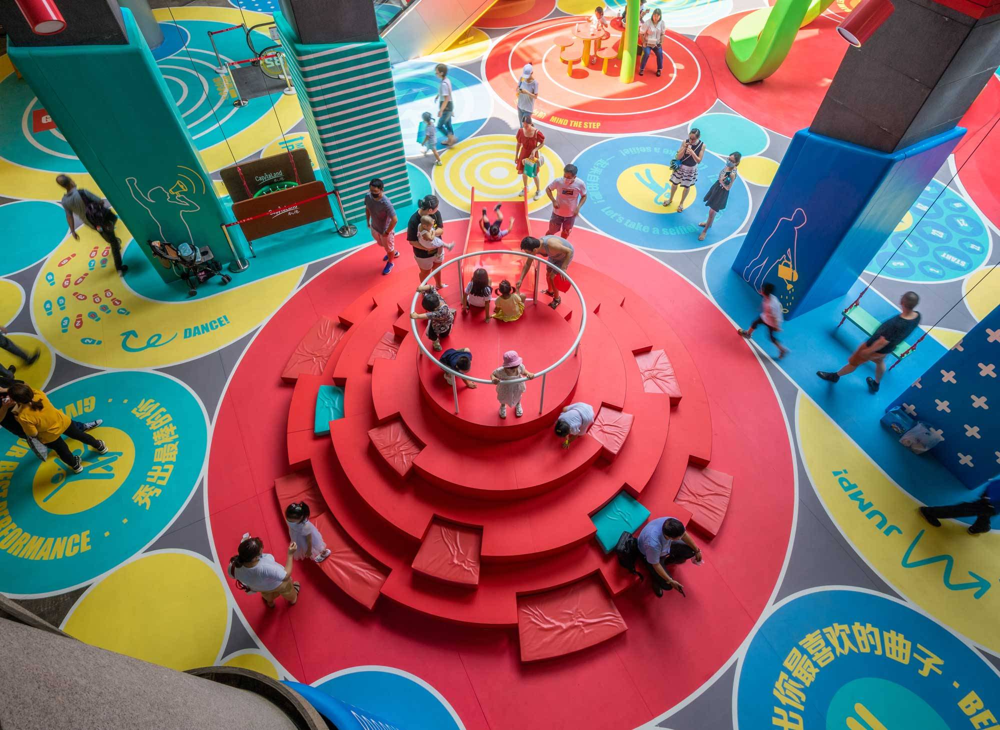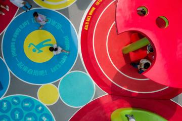 許多圓圈由互動游戲、圖案和信息組成,鼓勵激活地面和空間的功能性和活動性。