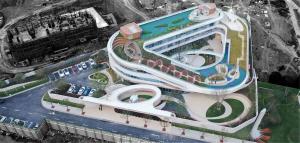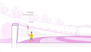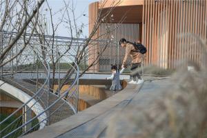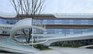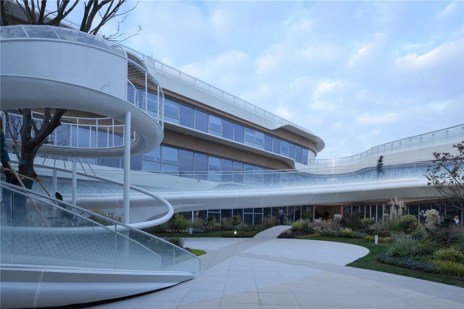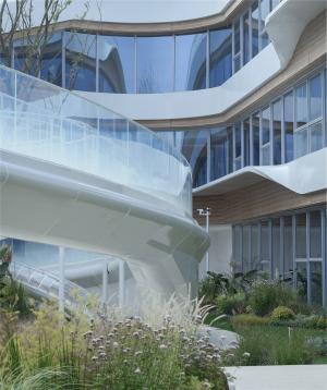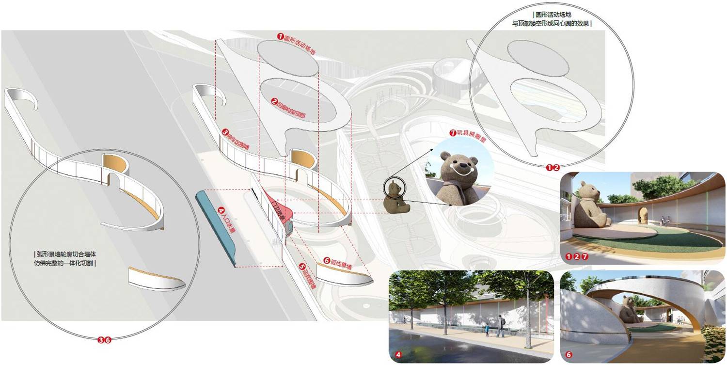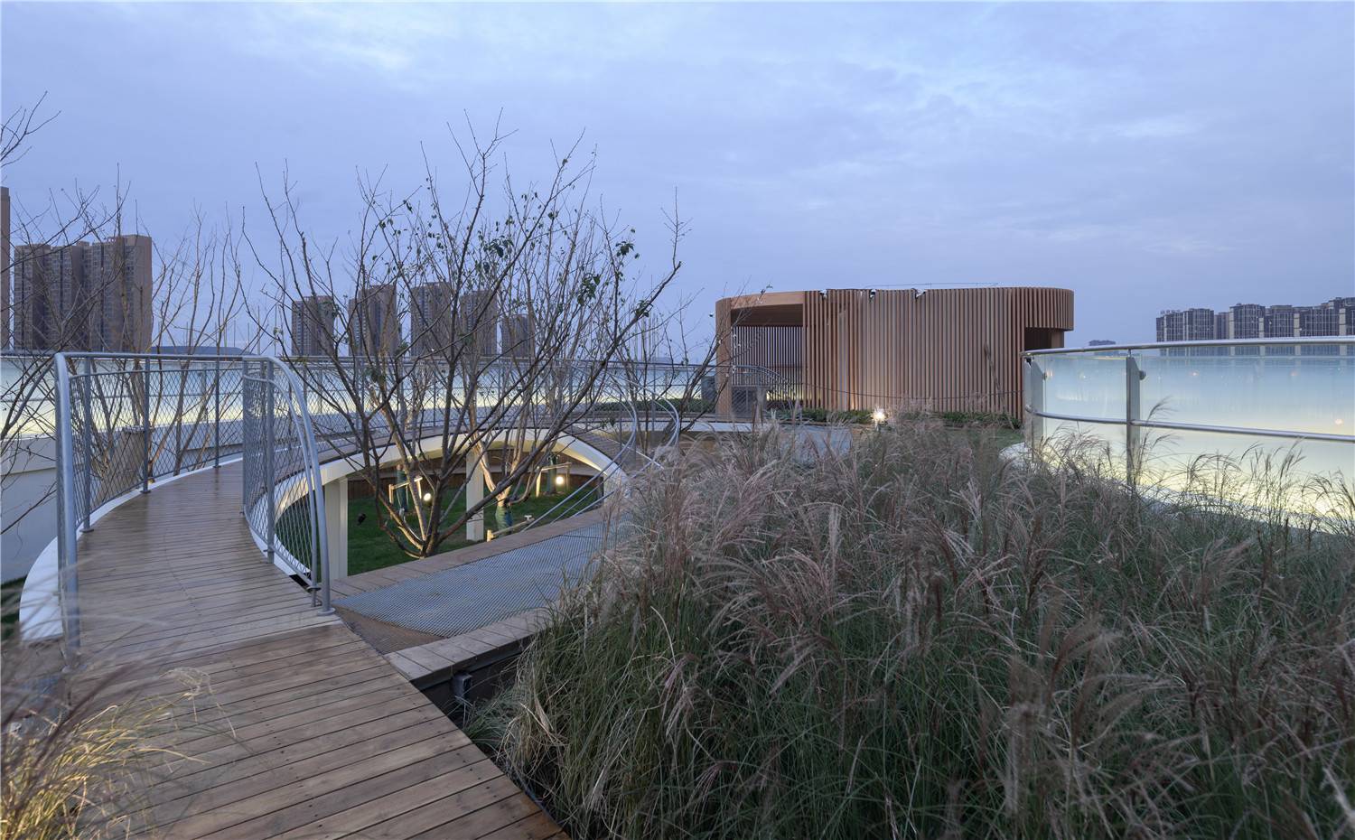 One third of the outdoor sites in the plot are on the roof of the building, so the landscape and the building need to be more closely linked. After analyzing layout of the building, the construction block and landscape space can be more closely linked via the traffic design, so as to stimulate the three-dimensional activity of the landscape space.
