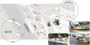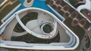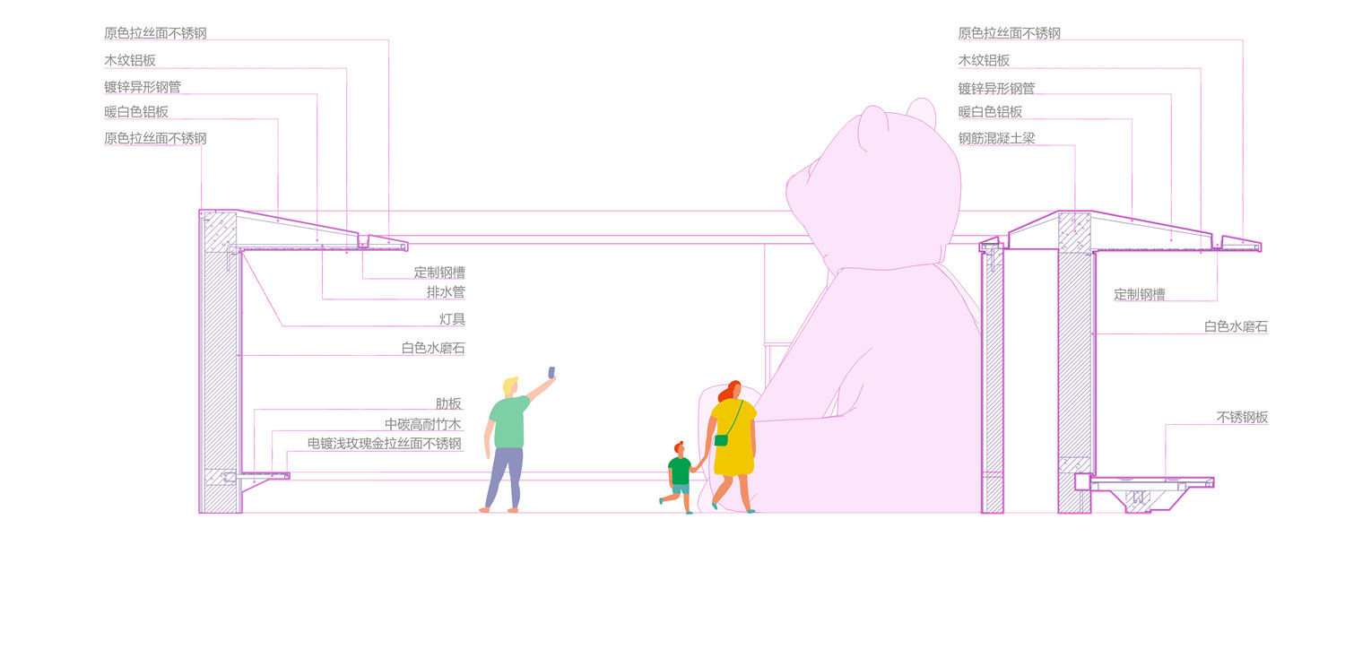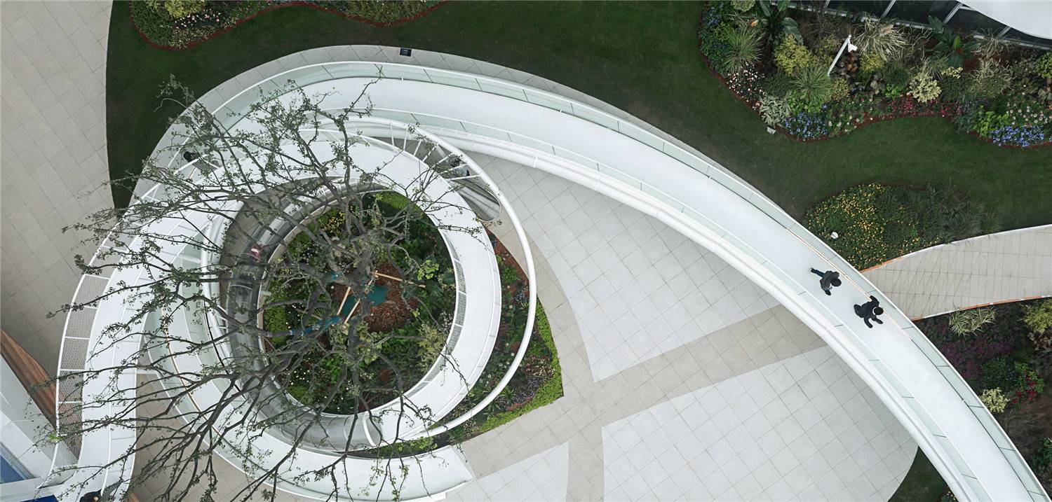The number of columns required for stabilizing the slide that reduced by the mutual force of the decorative ring, and finally the slide space with a more spiral visual sense is presented, which is overlapped with the traffic system of the flying Gallery, forming a unique visual feeling.