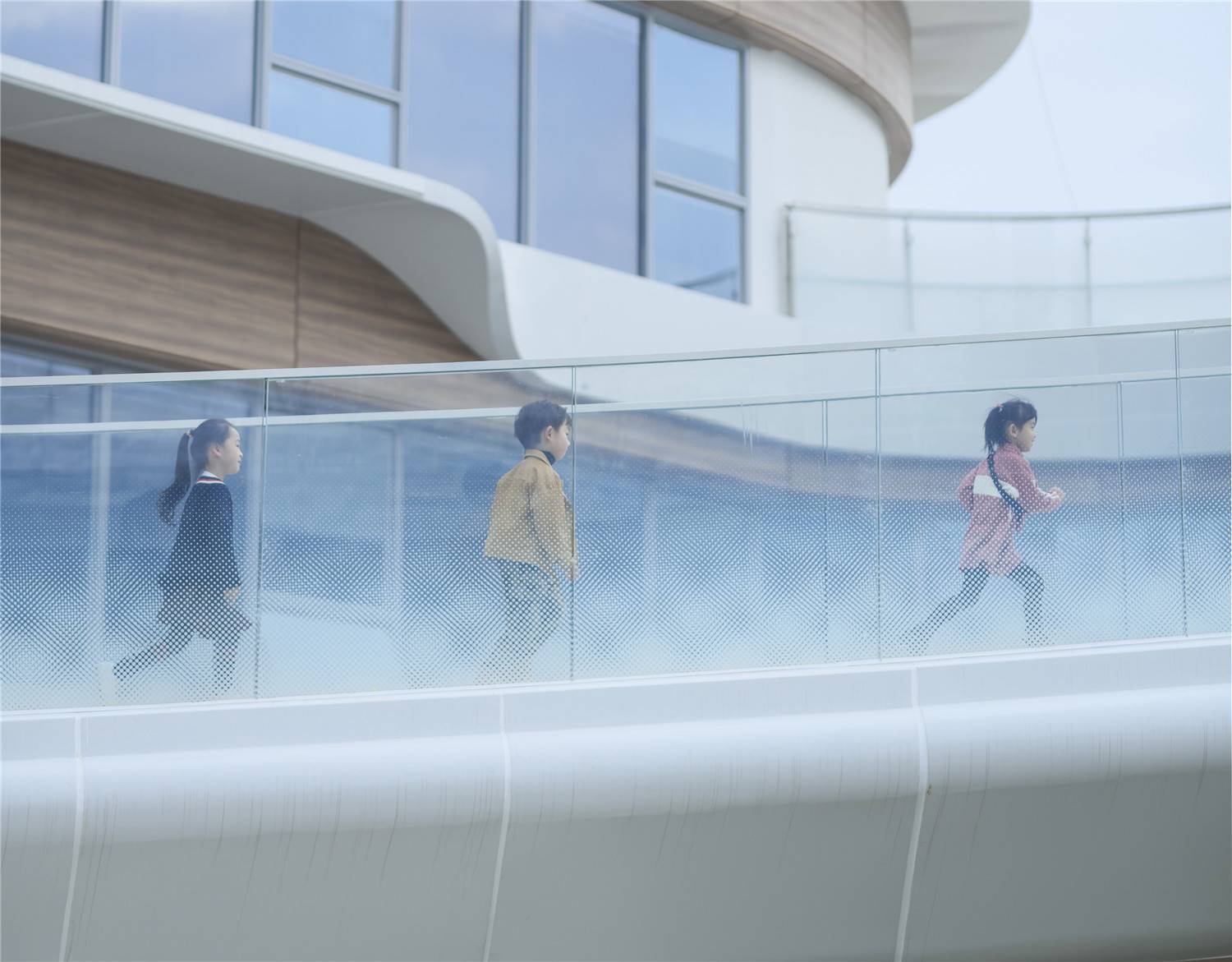 In the flying Gallery, large-scale structural parts are used to ensure that no columns can be used to support the flying Gallery, to have a strong sense of flying. The glass railings are decorated with gradual wave points, as if the clouds in the sky have a subtle effect on vision, giving children more courage to fly.
