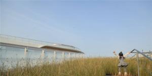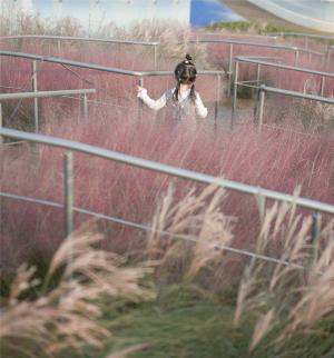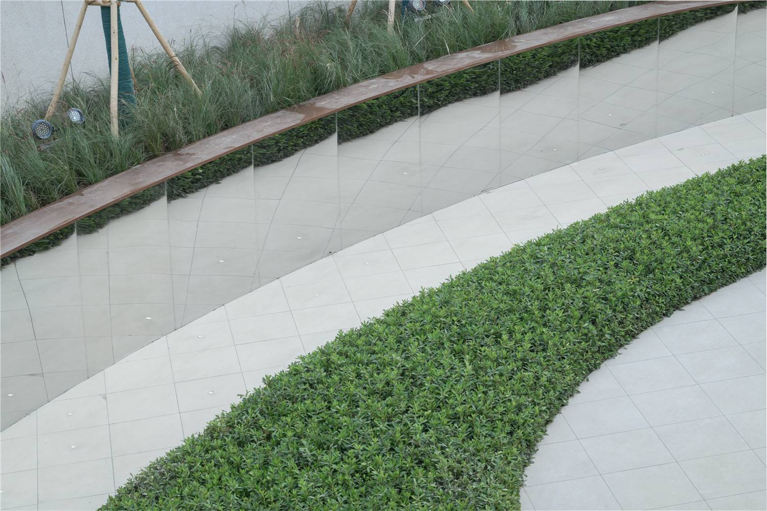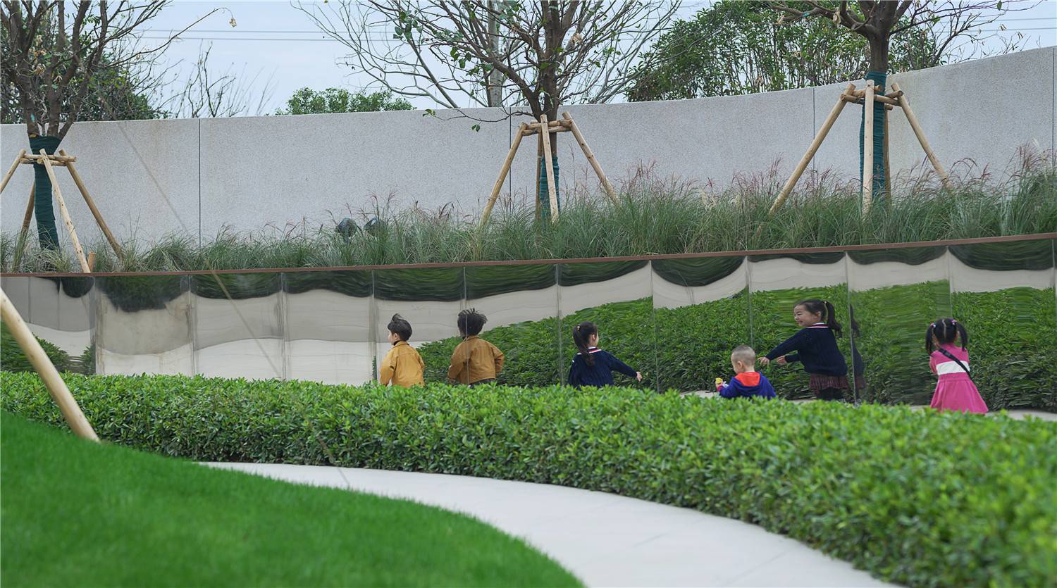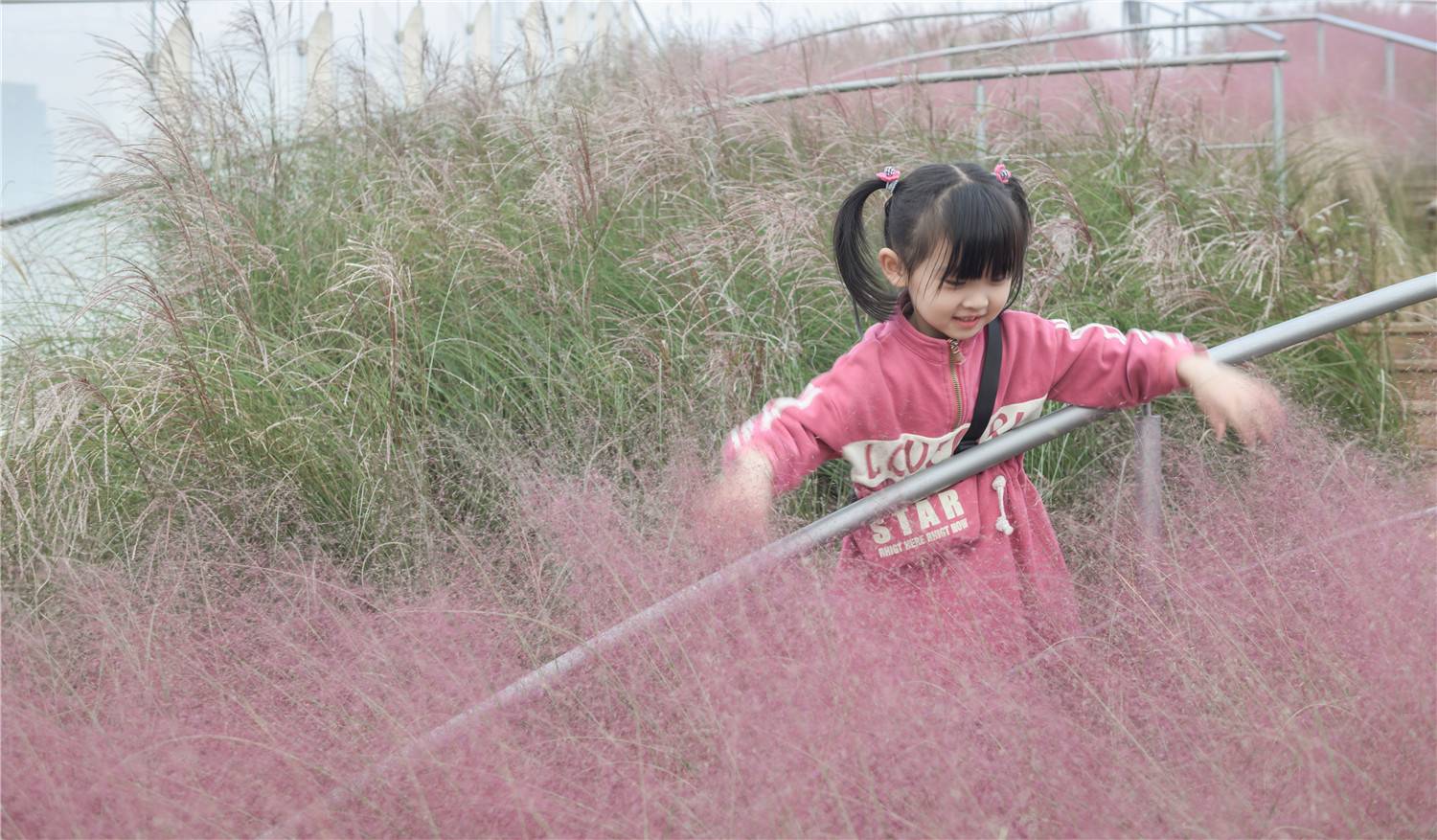 On the other side of the terrace, we spread a piece of Pennisetum along the gentle slope of the building. Yellow "wheat field" connects the blue sky, as the sky is touchable by jumping up in the grass slop.