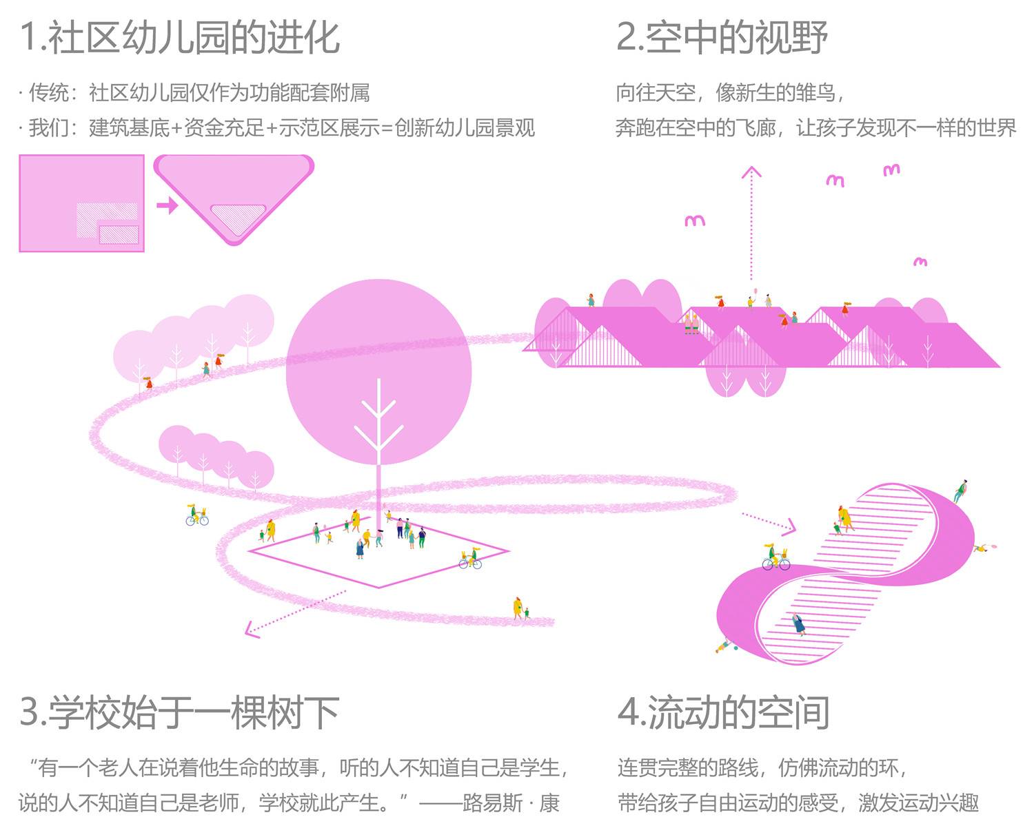 幼兒園先期作為售場而存在,使得園區(qū)開發(fā)能有更多的造價支持和設計空間。在此基礎上,我們試圖尋找社區(qū)幼兒園更多的可能性,期待其高于功能、富於想像。
