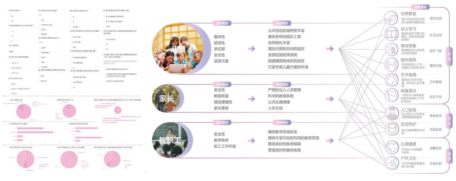 通過實際網(wǎng)絡問卷調查的實際大數(shù)據(jù)研究,分別以孩子、家長、教職三個群體設置相應的功能模塊植入,使空間功能得到進一步完善。