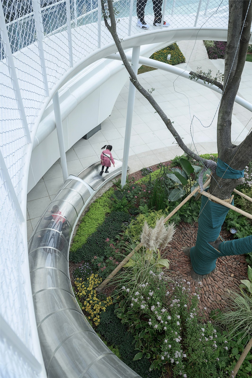 In the main space, we hope to have a big tree to carry the children's natural perception and memory of childhood. Children's spiritual place is constructed through the interweaving of real world experience and imagination, so the imaginative space and extraordinary experience can stimulate children's imagination more. The three-dimensional traffic layout hopes that children can enjoy ‘flying in the big tree’ like sparrows.
