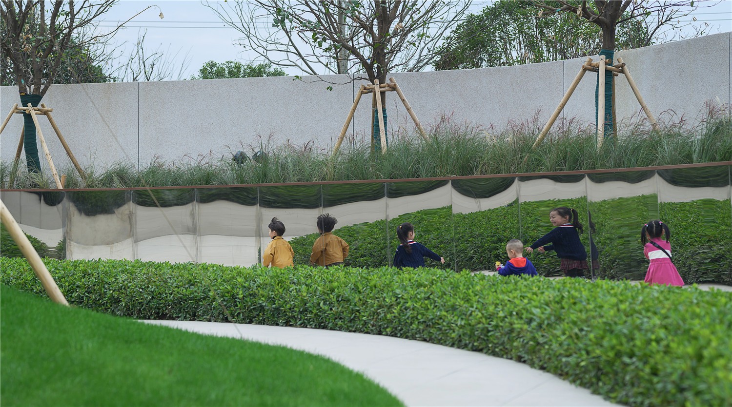 The hall mirror wall in the corner space of the activity venue prompts children to self-examine and think, and enhances the fun of running. As a whole, the setting of the mirror makes the space have a broader visual experience. At the same time, the number of children has doubled from the visual point of view, as if the joy has also doubled.