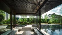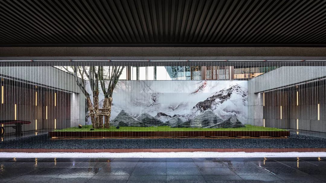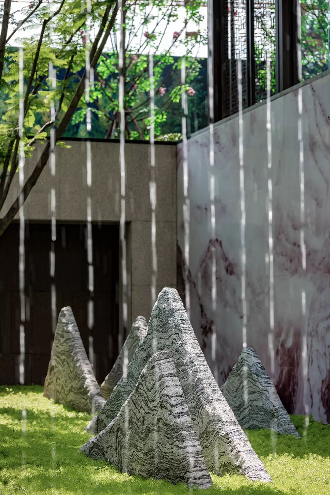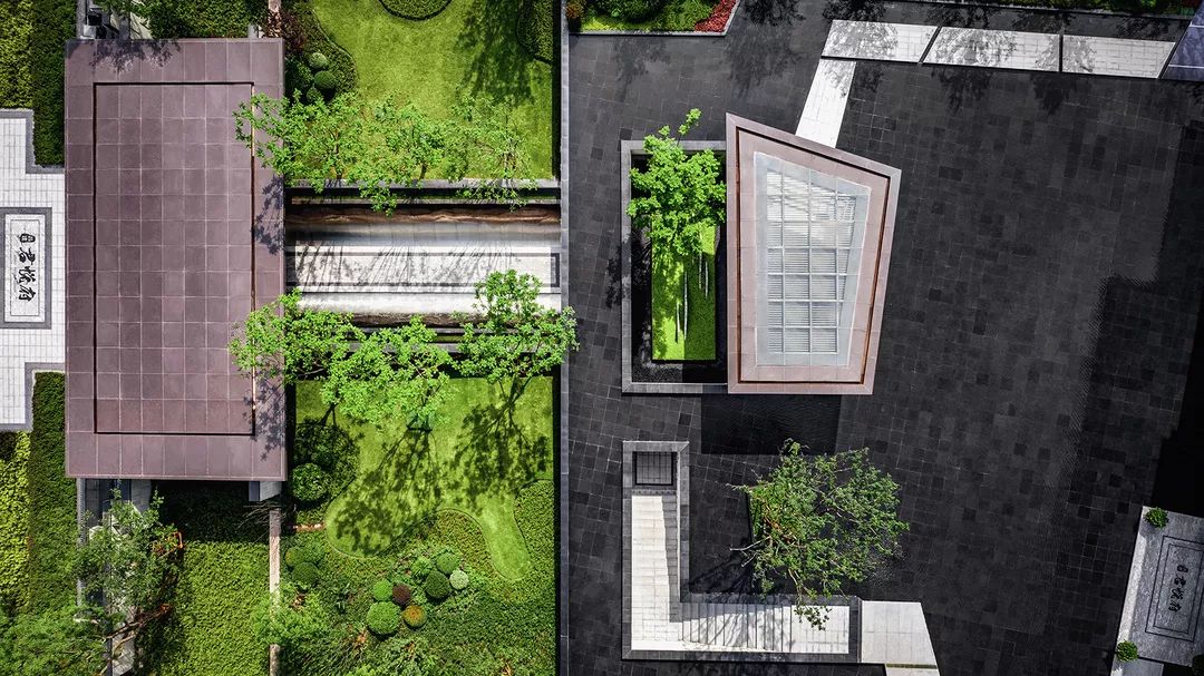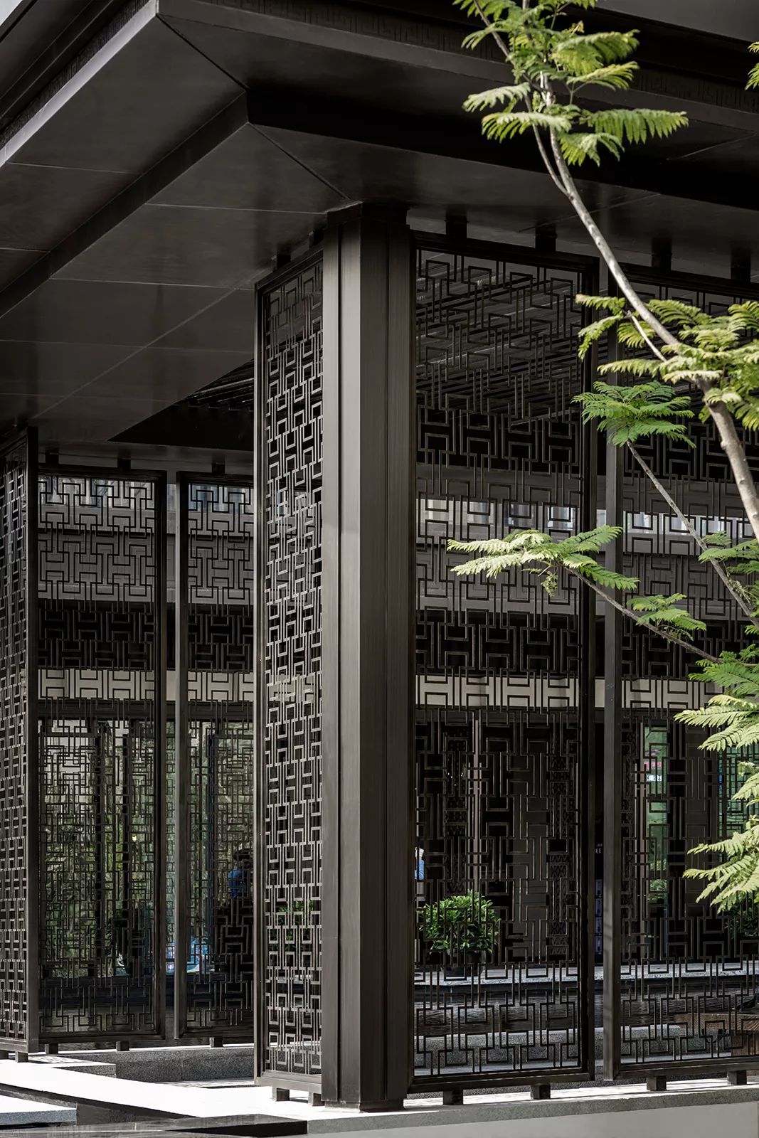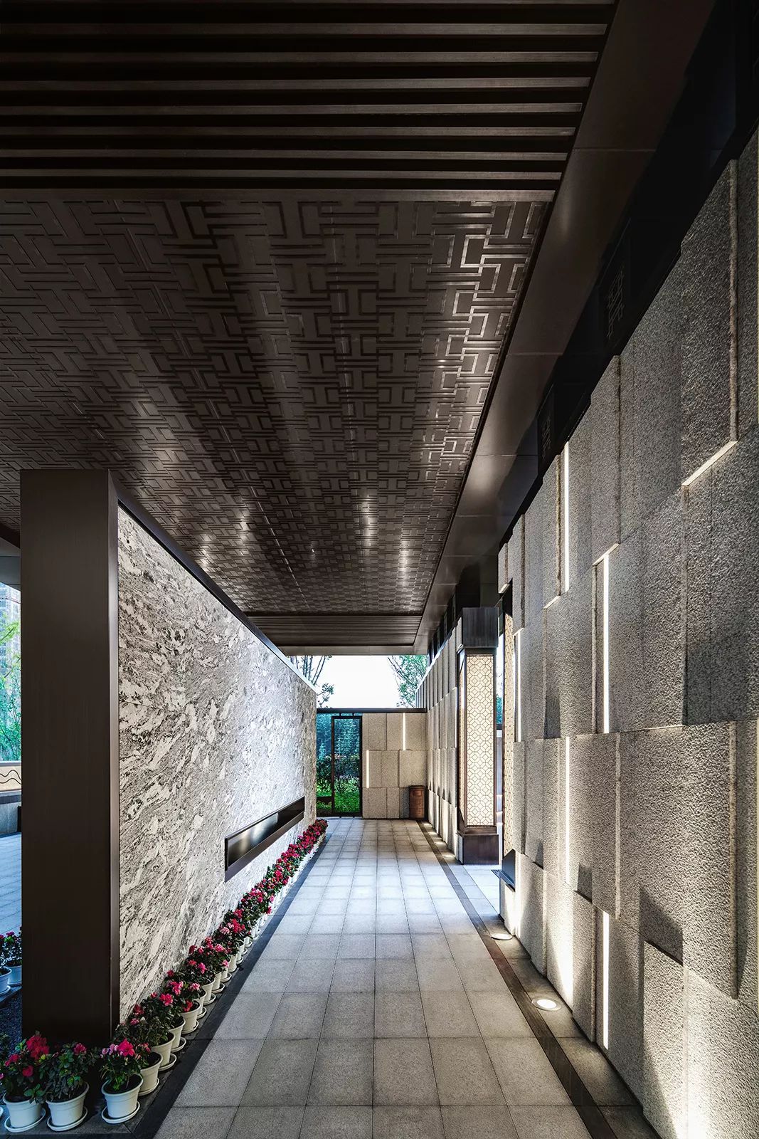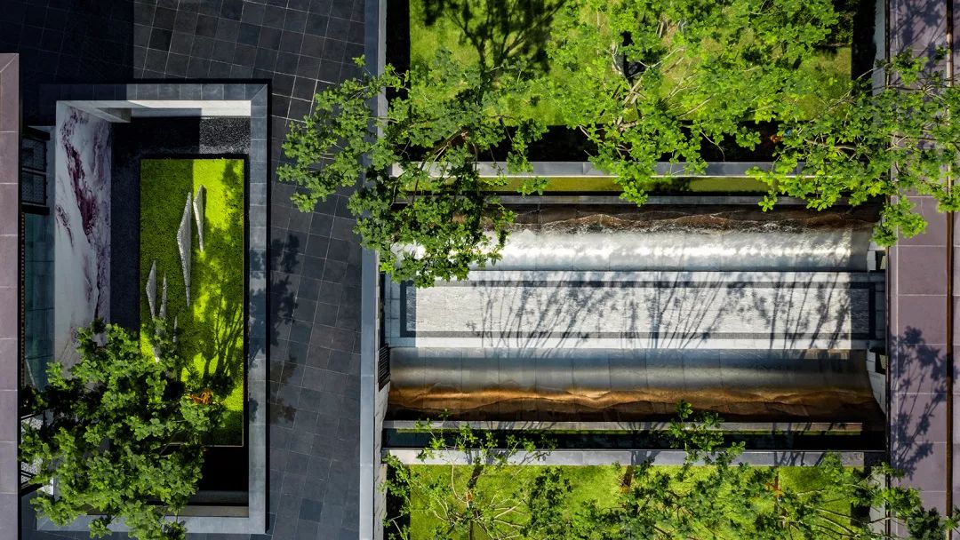 設計中,更是取有形的建筑景觀之美,營造無形情境的生活之美。引用自然山水元素,利用建筑結(jié)構及草木植株的光影對空,將東方美學帶到現(xiàn)代理性當中,勾畫精美、雅奢、禪意的東方畫境,仿佛人在畫中游。