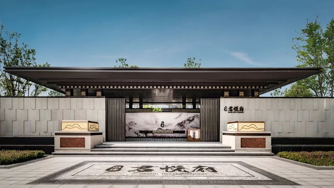 蘇東坡有詩云:靜故了群動,空故納萬境。以“隨物賦形”的方式,根據(jù)事物本身自然地描繪出其形狀,強調(diào)創(chuàng)作時與對象的自然順應關系。在君悅府項目中,景觀設計自探索地域性人文符號為始,融合周邊自然生態(tài),從“山澗流水”提煉出水之靈動韻律與詩畫形態(tài),應用于示范區(qū)設計構思中。