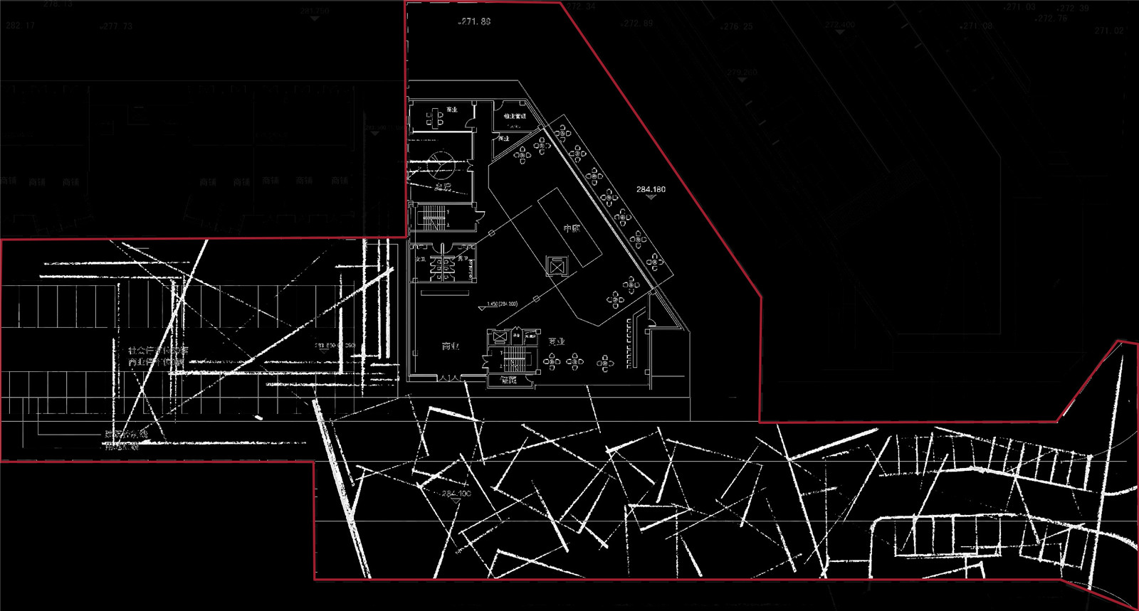 The designers have specially created a long and narrow space, which is full of surprises and cliffhangers, attracting people to explore more. Bathed in the mysterious atmosphere, blocks collide with curves, symbolizing the relationship between thought and reality.