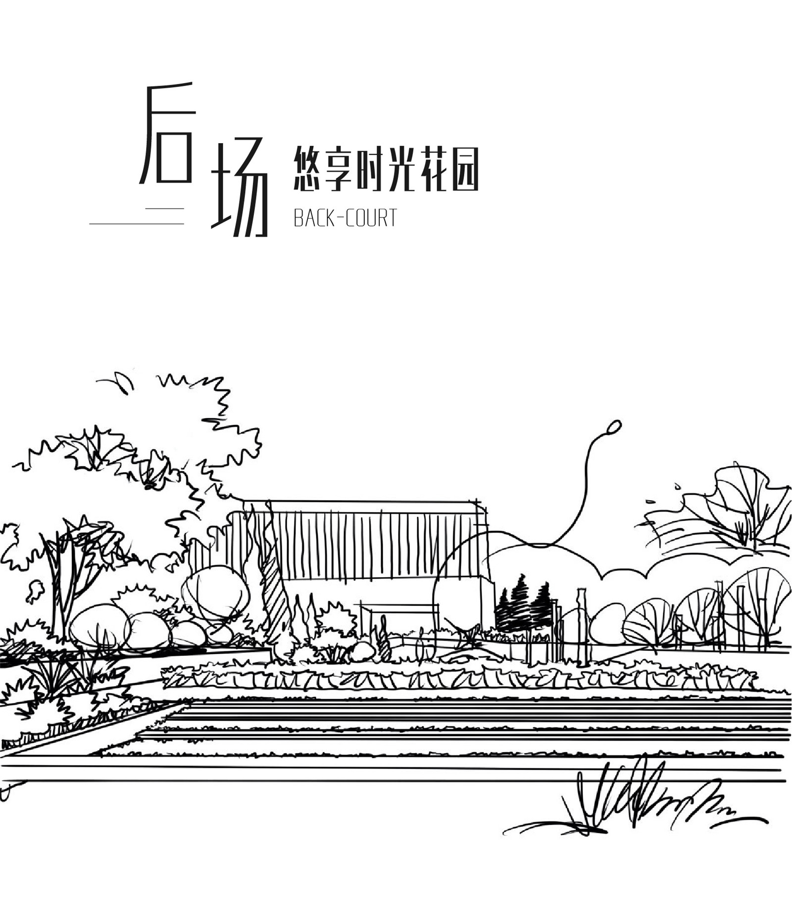 因此,后場(chǎng)的設(shè)計(jì)采用大量的繽紛草花,營(yíng)造繽紛浪漫的空間氛圍,增強(qiáng)了空間的層次感與韻律感。幾何感切割的線條將場(chǎng)地空間劃分,豐富場(chǎng)地功能。