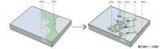 方案為保證這一區(qū)段原有防洪堤和堤頂路的完整性同時豐富景觀空間,在不破壞大堤結(jié)構(gòu)的前提下,采用生態(tài)臺地的手段有效增加覆土厚度,為喬木種植提供必要條件;又在局部空間通過加高堤頂?shù)姆绞截S富原有平直無變化的堤頂路形態(tài);濱水空間采用基礎(chǔ)配重的方式增設(shè)挑臺拓展空間,又不產(chǎn)生柱基破壞大堤結(jié)構(gòu)。