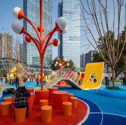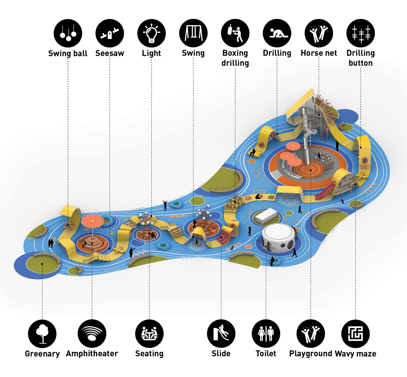 該項目旨在締造一個新的公共空間類型-“城市玩具”。秉持著“游戲不僅是孩子們的專屬權”之設計理念的佰筑,為城市和全年齡段公眾,設計了這樣一個城市游戲景觀。