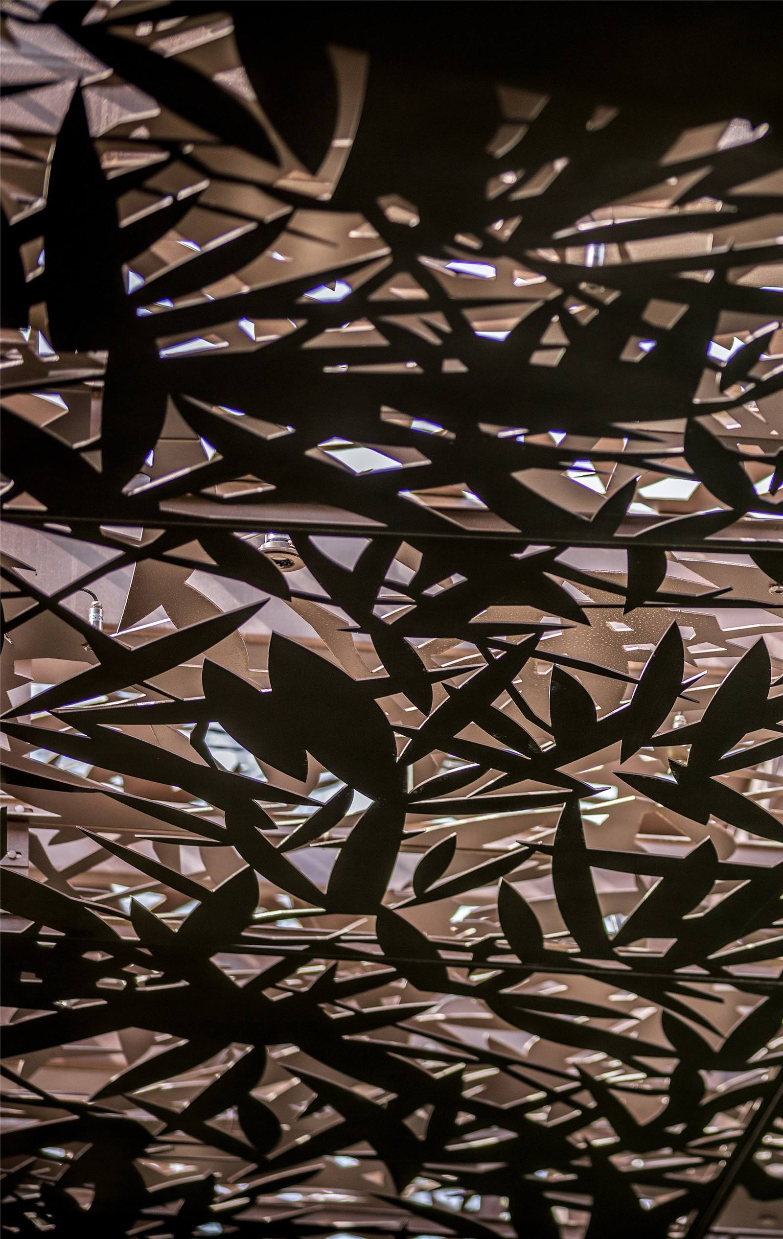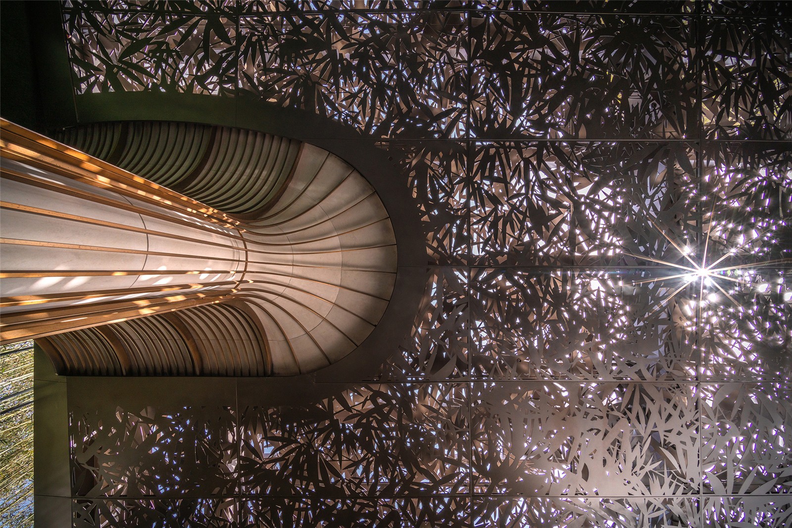 ▲ 竹苑主入口頂棚,仿竹葉設(shè)計(jì) The ceiling is designed with imitated bamboo leaves